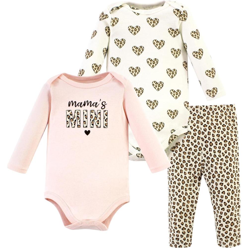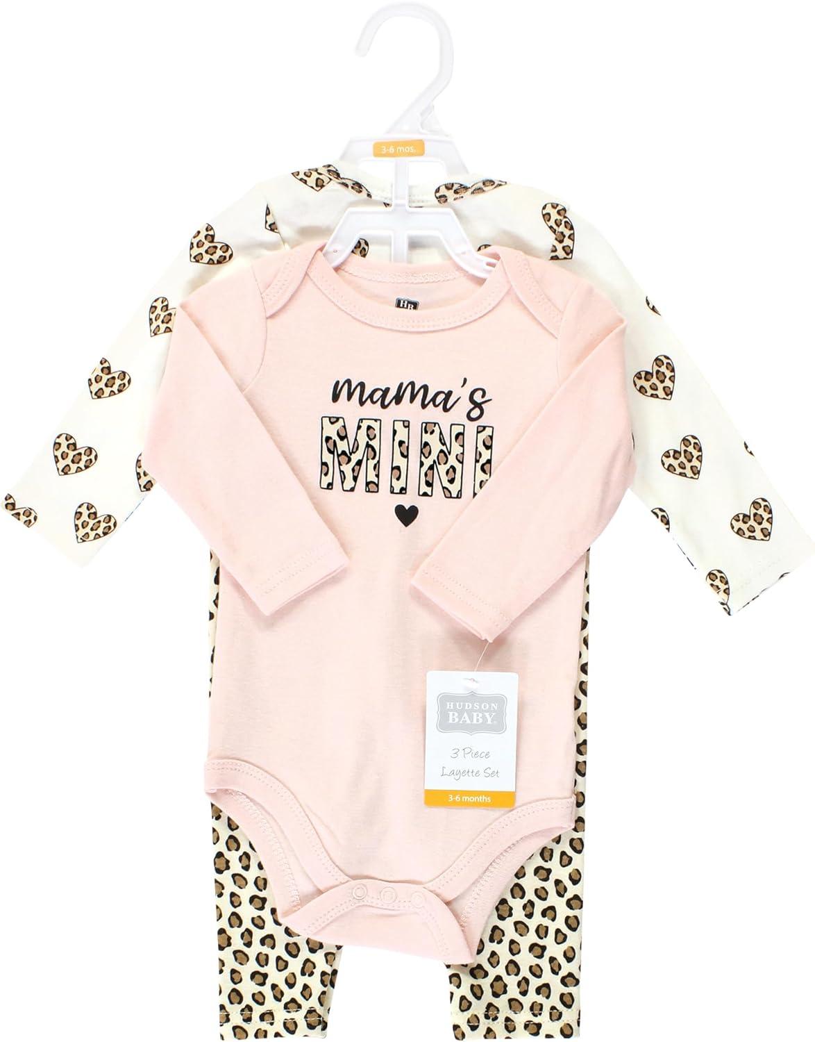 Hudson Baby Unisex Cotton Bodysuit and Pant Set(Leopard Hearts Long Sleeve)