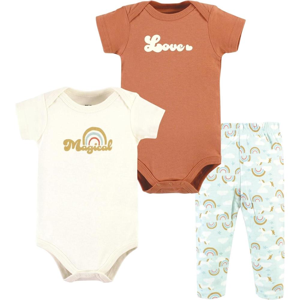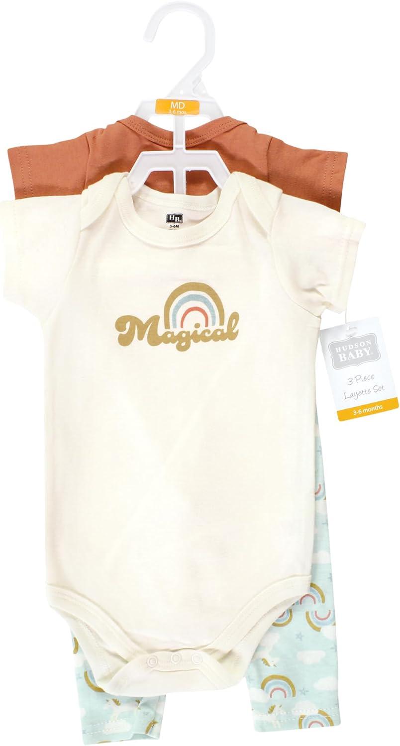 Hudson Baby Unisex Cotton Bodysuit and Pant Set(Magical Rainbow Short Sleeve)