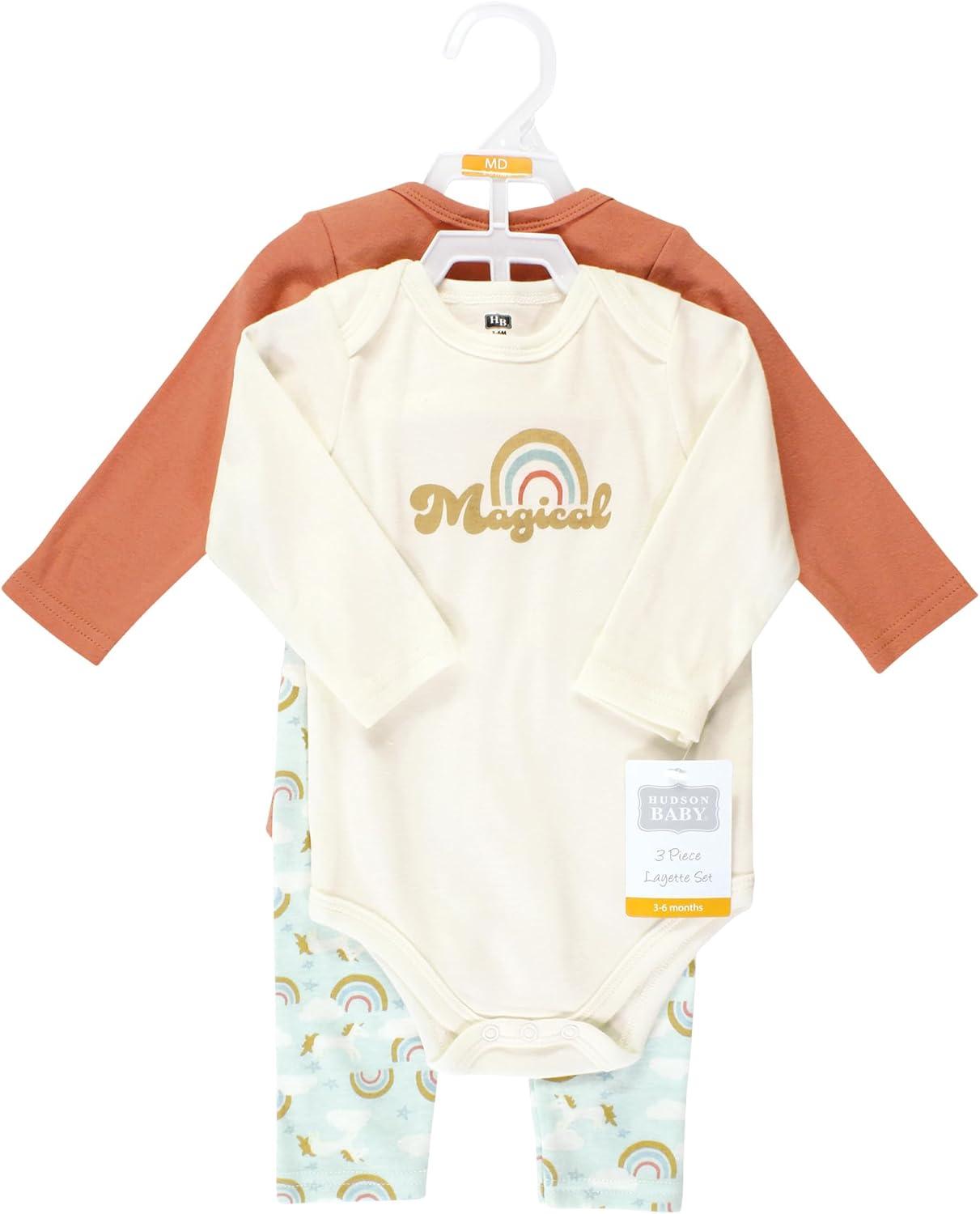Hudson Baby Unisex Cotton Bodysuit and Pant Set(Magical Rainbow)