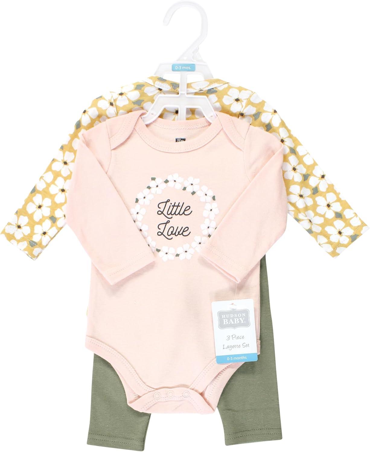 Hudson Baby premium layette collection of high quality cute baby clothing features 100% premium cotton for the softest touch on your baby's gentle skin. This short sleeve and long sleeve bodysuit with pant set is perfect for cooler weather! Bodysuits have stretchable neck opening to go over baby's head easily. Pants can match either bodysuit. Clothing is made of 100% super soft cotton and durable for everyday wear.