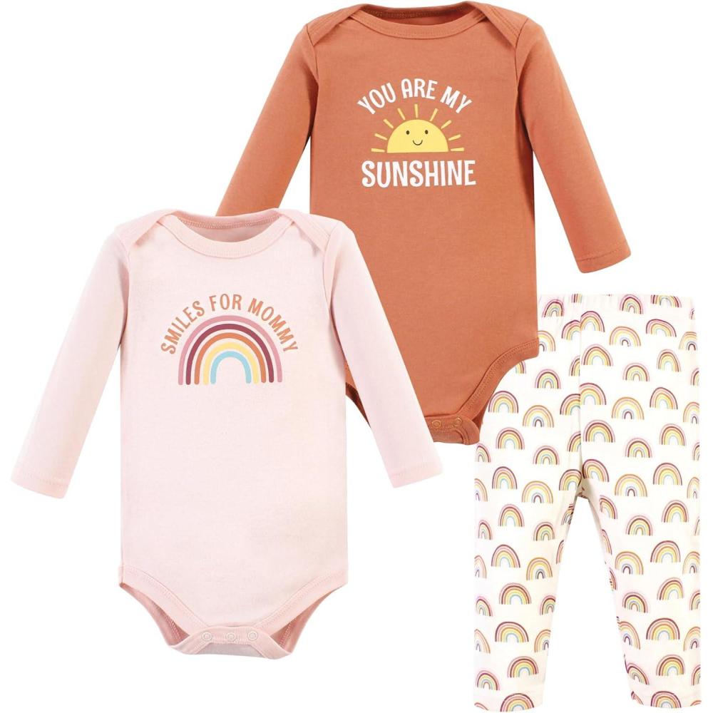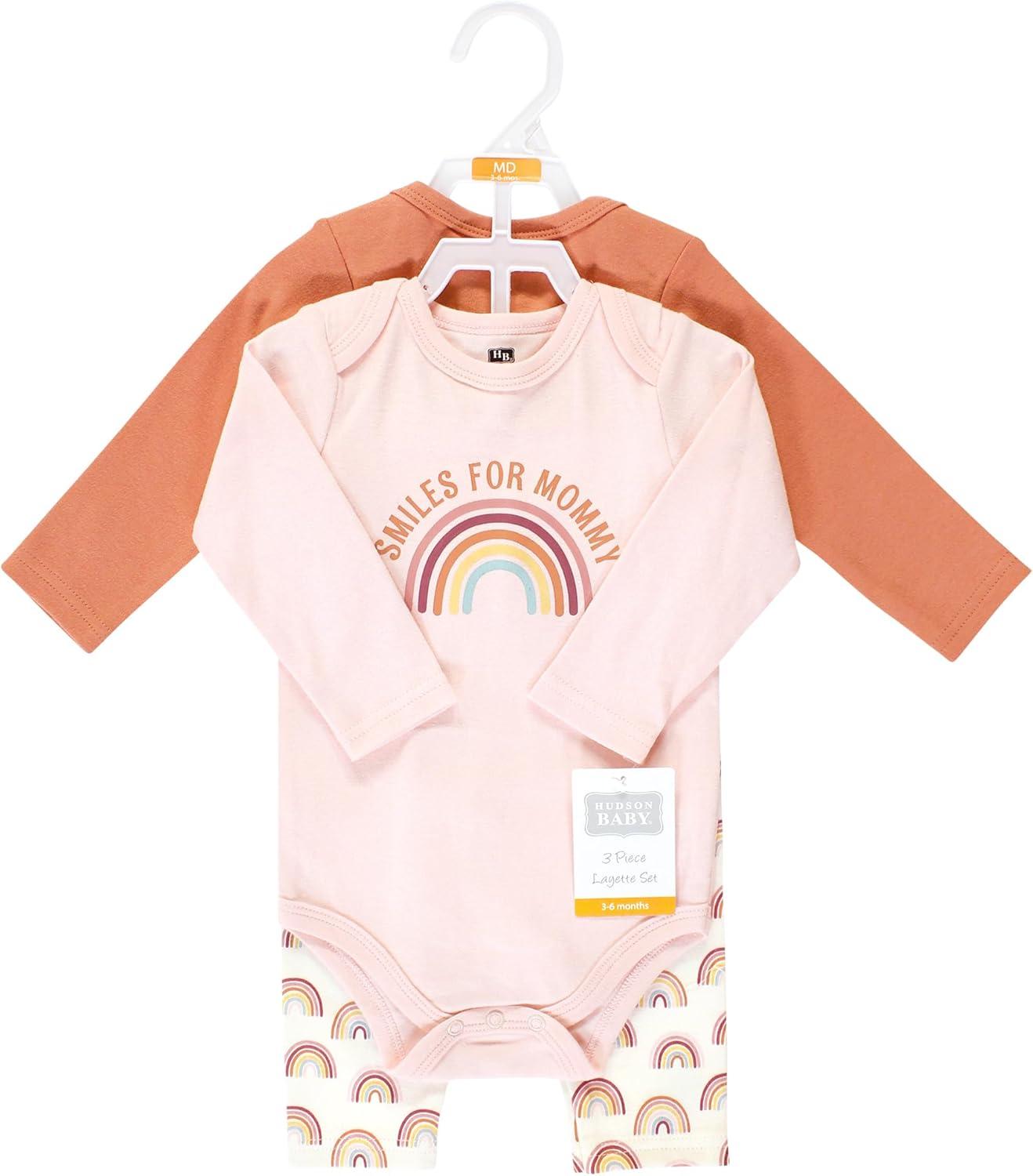 Hudson Baby Unisex Cotton Bodysuit and Pant Set(Sunshine Rainbows Long-sleeve)
