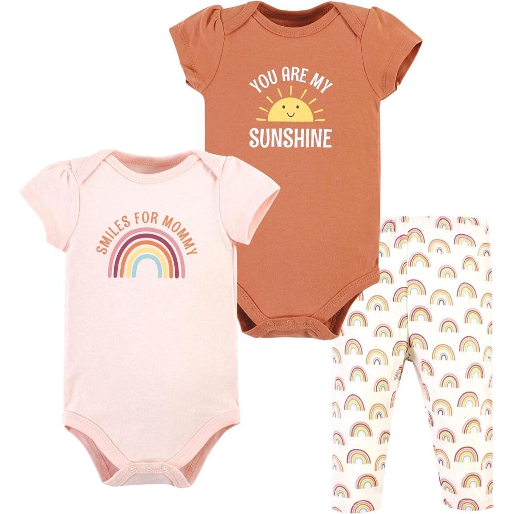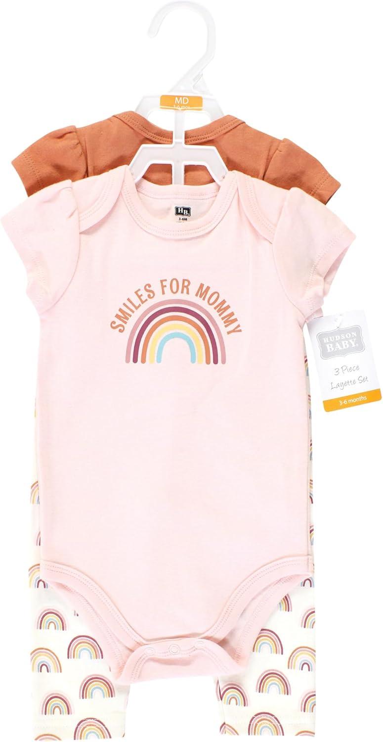 Hudson Baby Unisex Cotton Bodysuit and Pant Set(Sunshine Rainbows Short-sleeve)