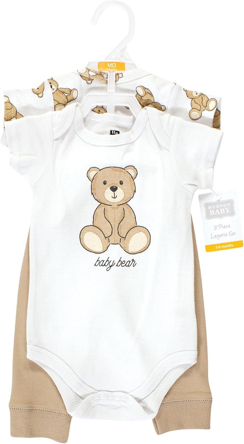 Hudson Baby Unisex Cotton Bodysuit and Pant Set(Teddy Bears Short Sleeve)
