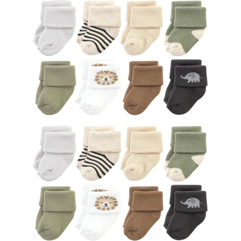 Hudson Baby Unisex Cotton Rich Baby Terry Socks 16-Pack(Brave Lion)