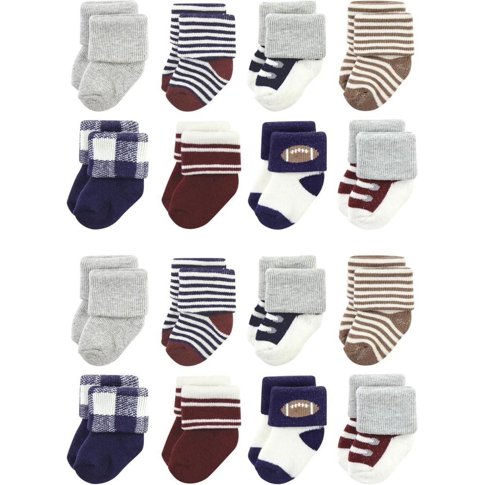 Hudson Baby Unisex Cotton Rich Baby Terry Socks 16-Pack(Football)