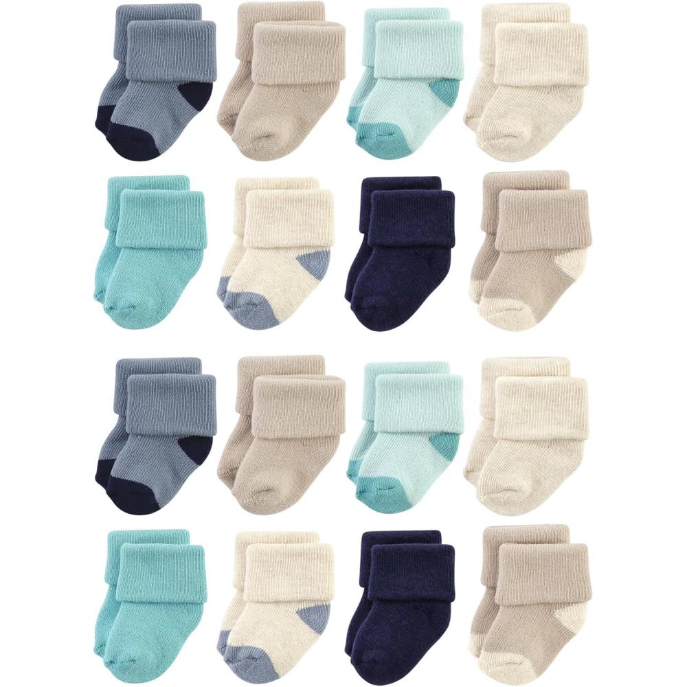 Hudson Baby Unisex Cotton Rich Baby Terry Socks 16-Pack(Navy Taupe)