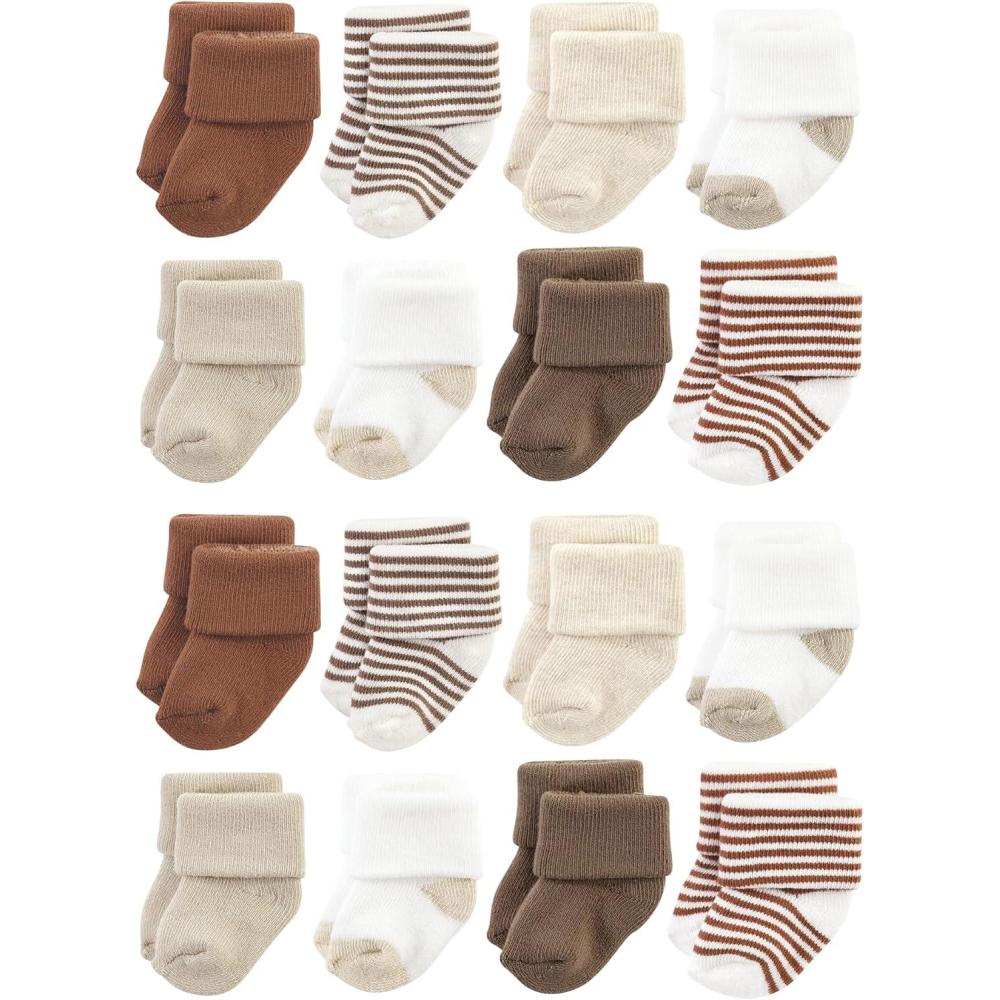 Hudson Baby Unisex Cotton Rich Baby Terry Socks 16-Pack(Neutral Brown)