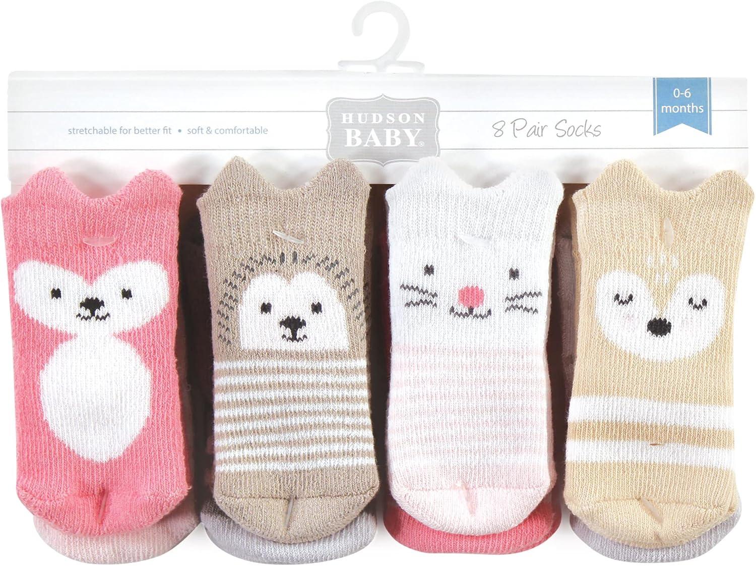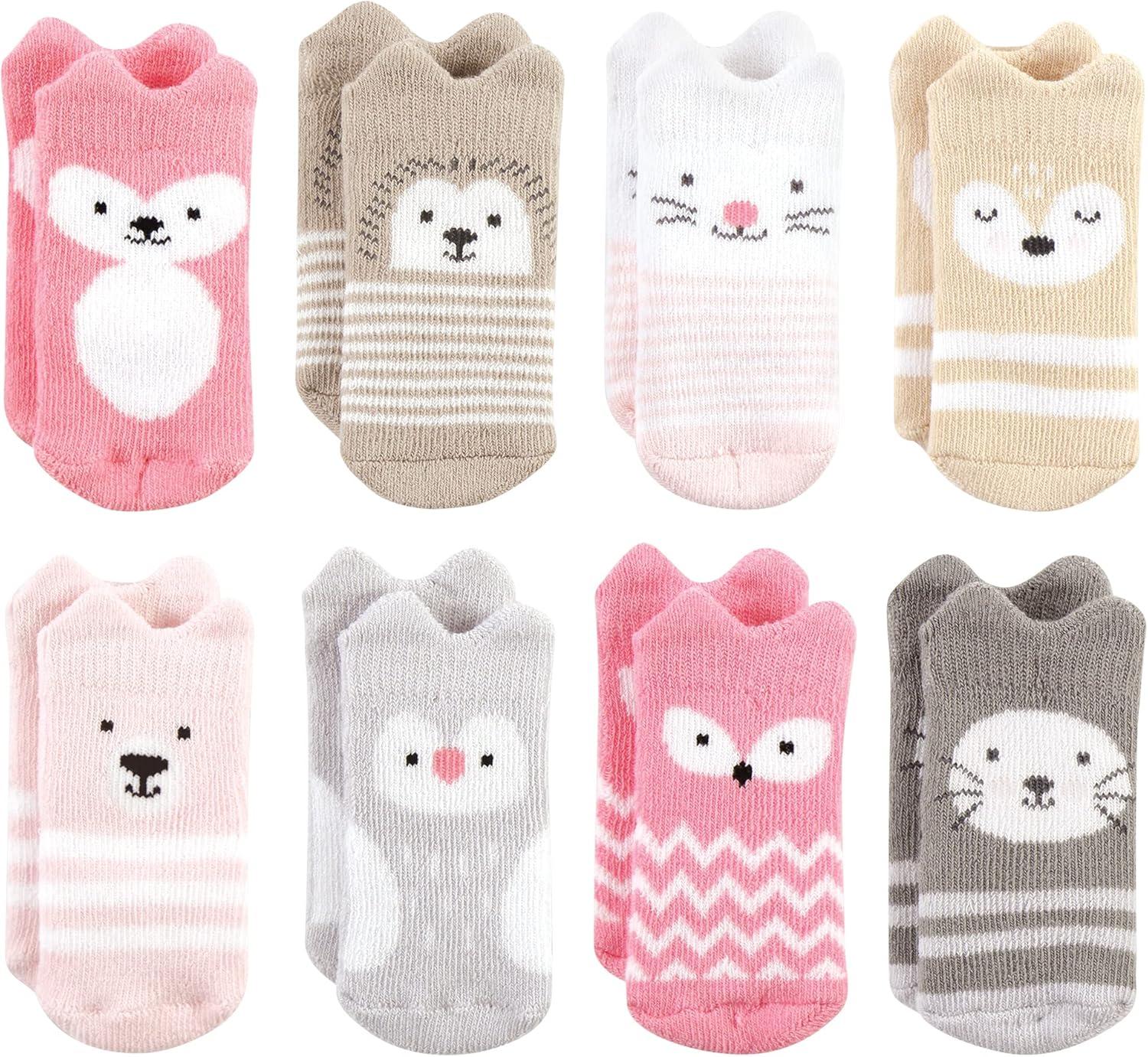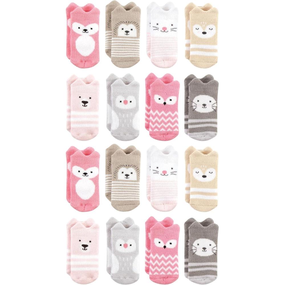 Hudson Baby Unisex Cotton Rich Baby Terry Socks 16-Pack(Pink Girl Woodland)