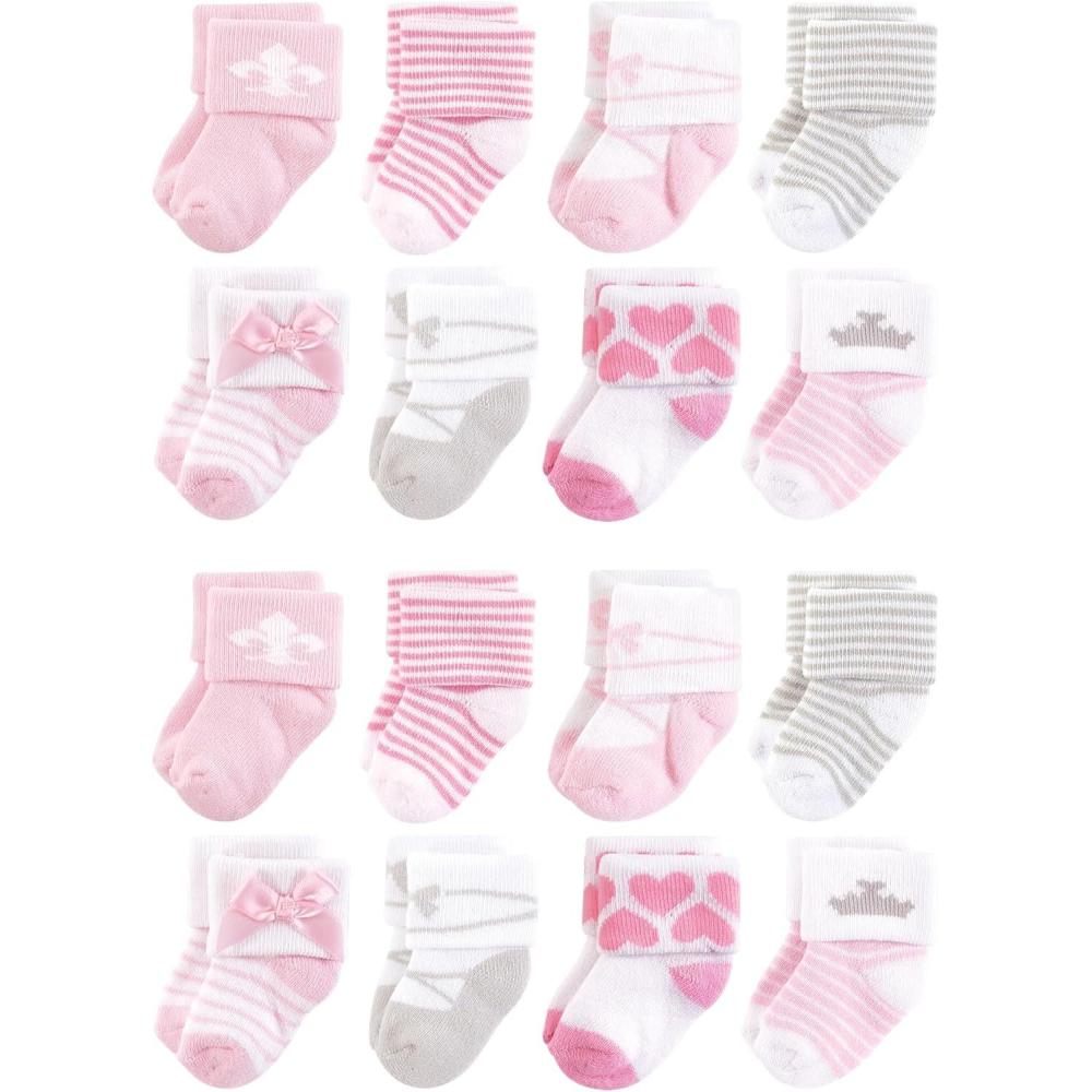 Hudson Baby Unisex Cotton Rich Baby Terry Socks 16-Pack(Pink Strawberry)