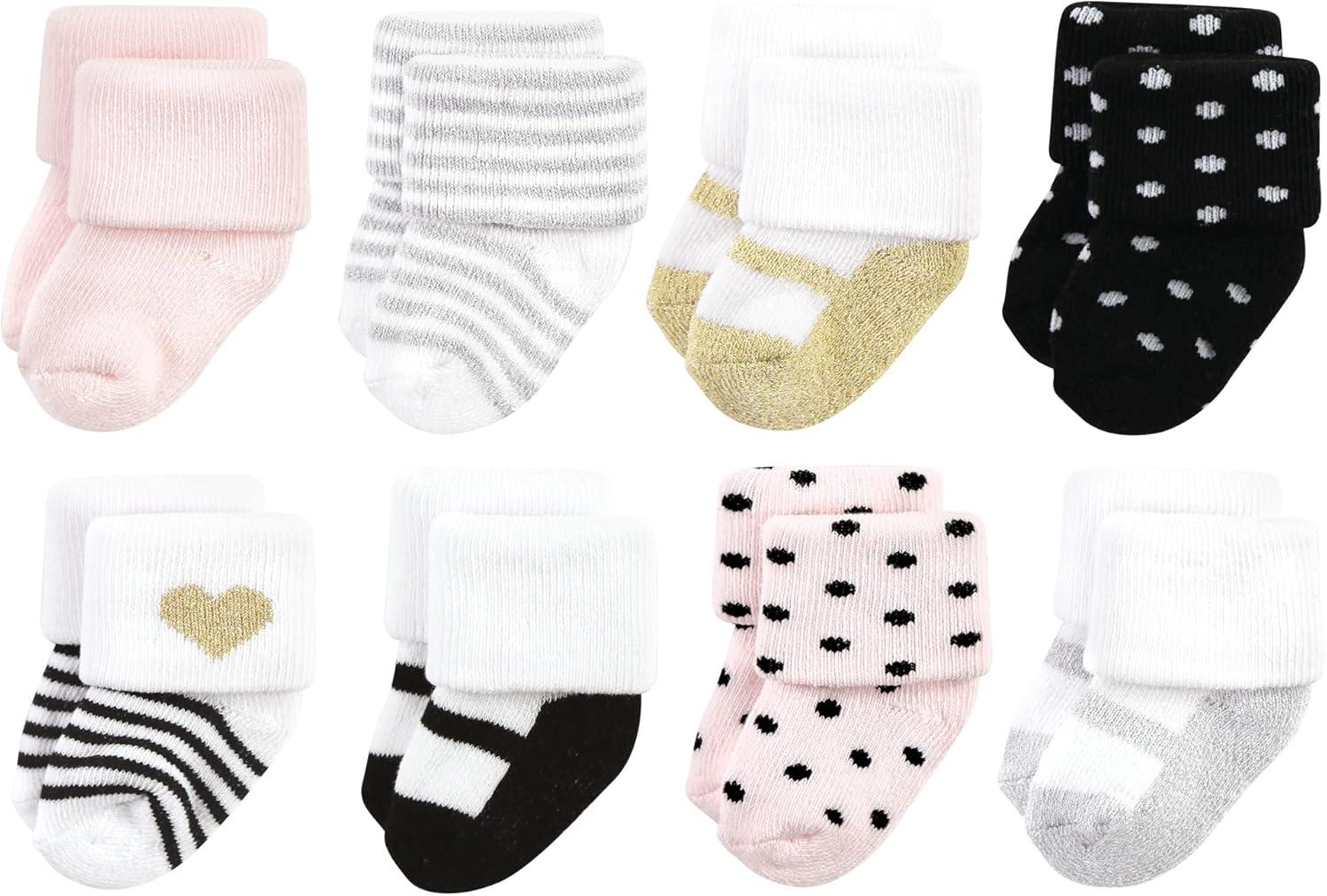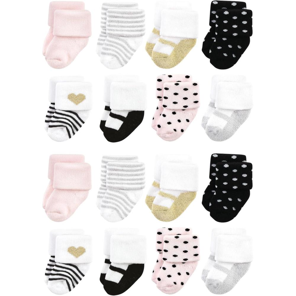 Hudson Baby Unisex Cotton Rich Baby Terry Socks 16-Pack(Silver Gold Pink)