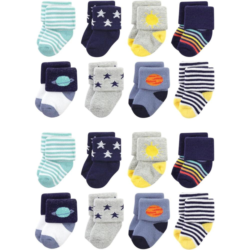 Hudson Baby Unisex Cotton Rich Baby Terry Socks 16-Pack(Solar System)