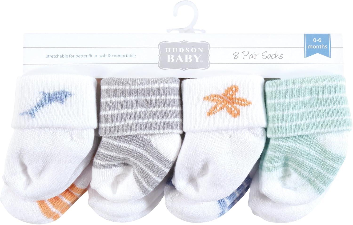 Hudson Baby Unisex Cotton Rich Baby Terry Socks 16-Pack(Starfish)