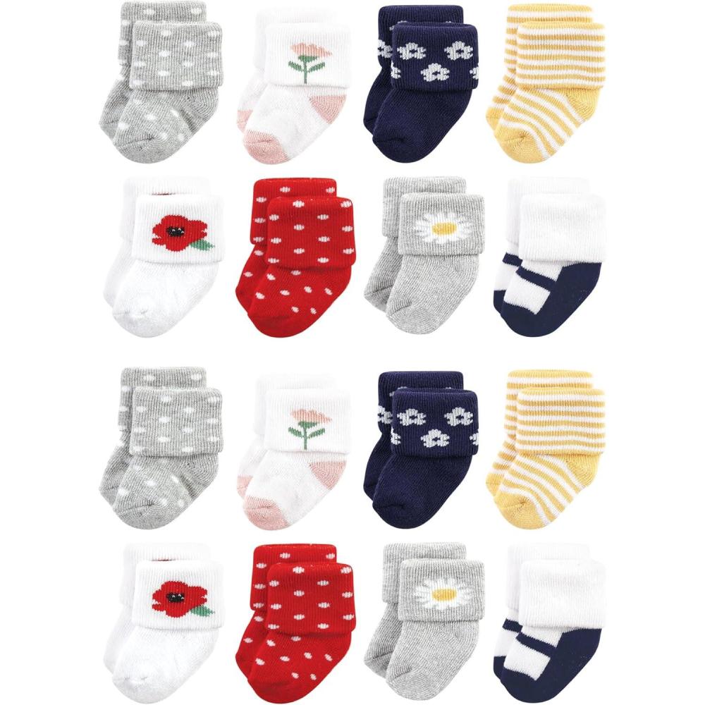 Hudson Baby Unisex Cotton Rich Baby Terry Socks 16-Pack(Tiny Flowers)