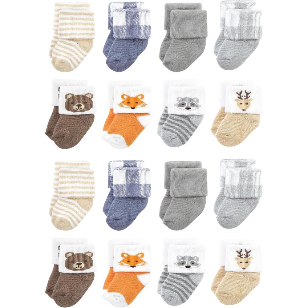 Hudson Baby Unisex Cotton Rich Baby Terry Socks 16-Pack(Woodland)