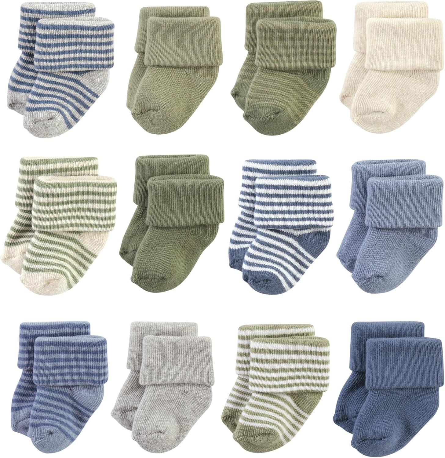 Hudson Baby Unisex Cotton Rich Baby Terry Socks 24-Pack(Blue Sage Stripe)