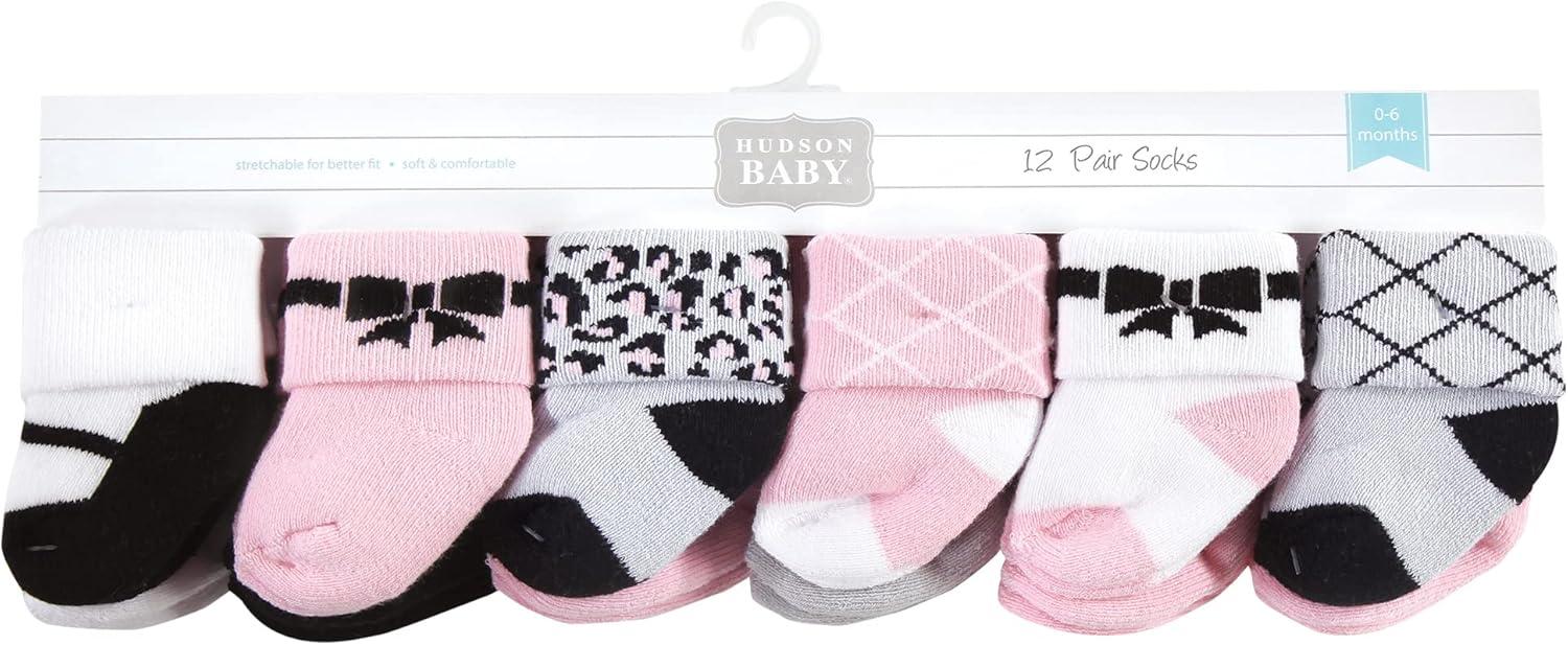 Hudson Baby Unisex Cotton Rich Baby Terry Socks 24-Pack(Bows)