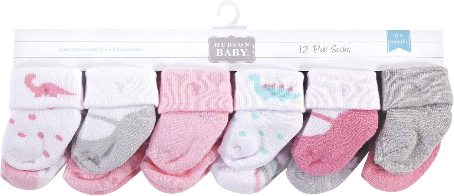 Hudson Baby Unisex Cotton Rich Baby Terry Socks 24-Pack(Girl Dino)