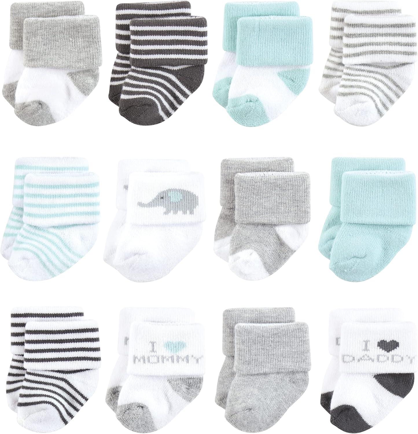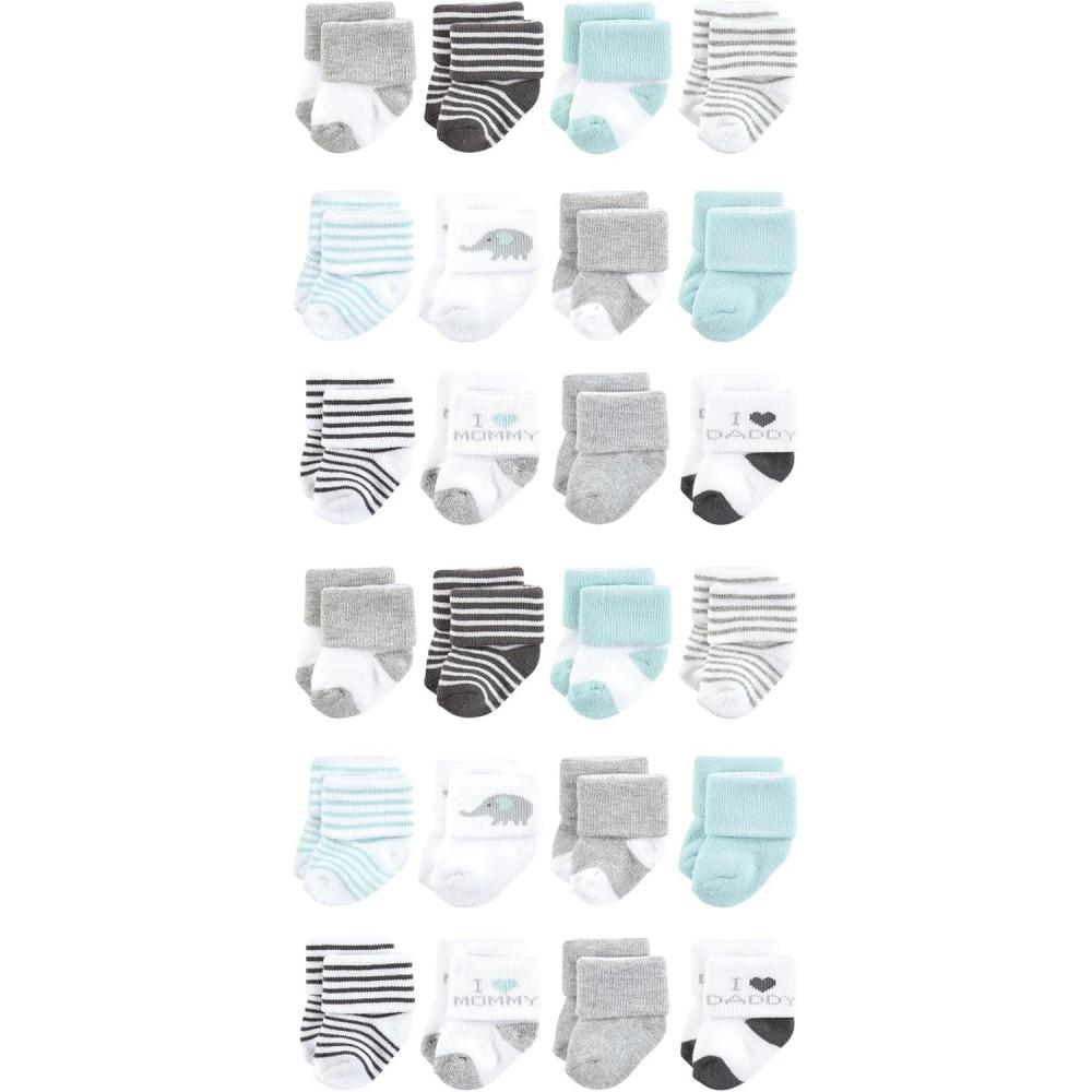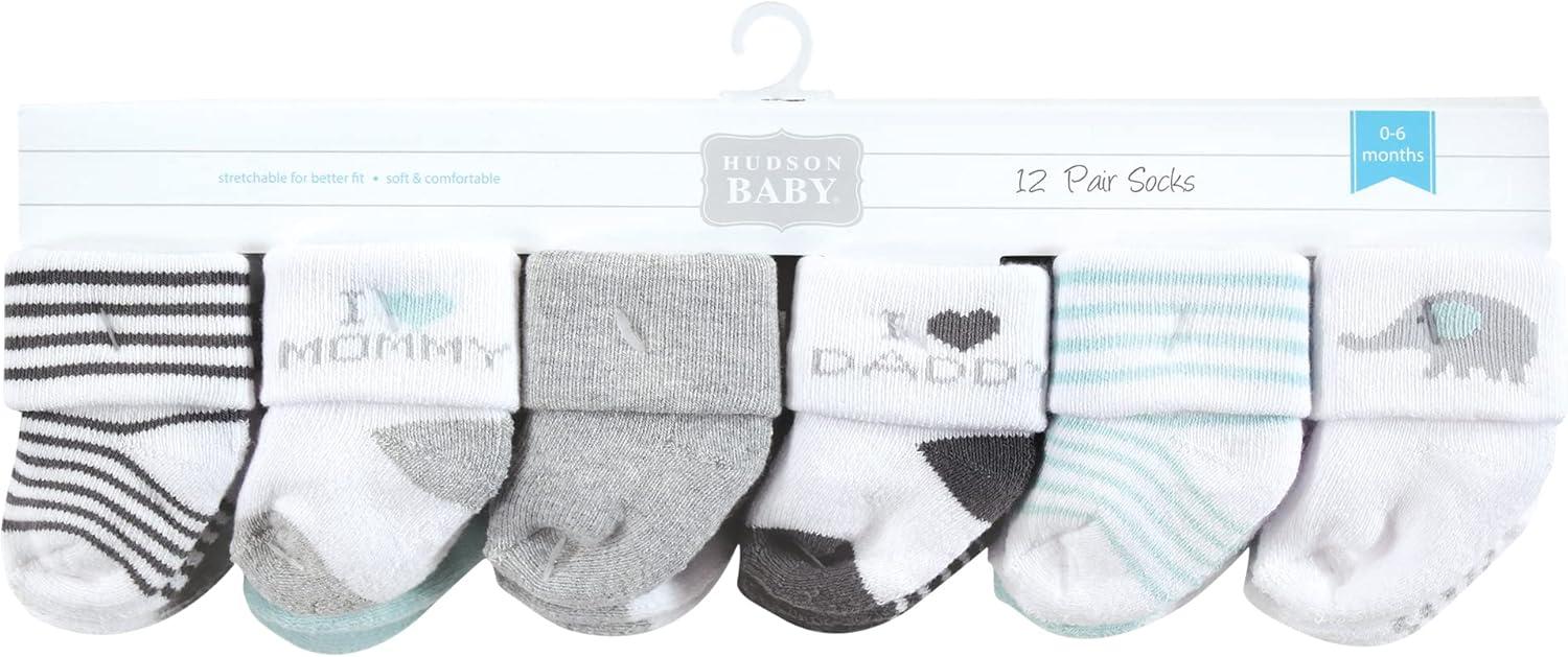 Hudson Baby Unisex Cotton Rich Baby Terry Socks 24-Pack(Mom and Dad Gray Mint)