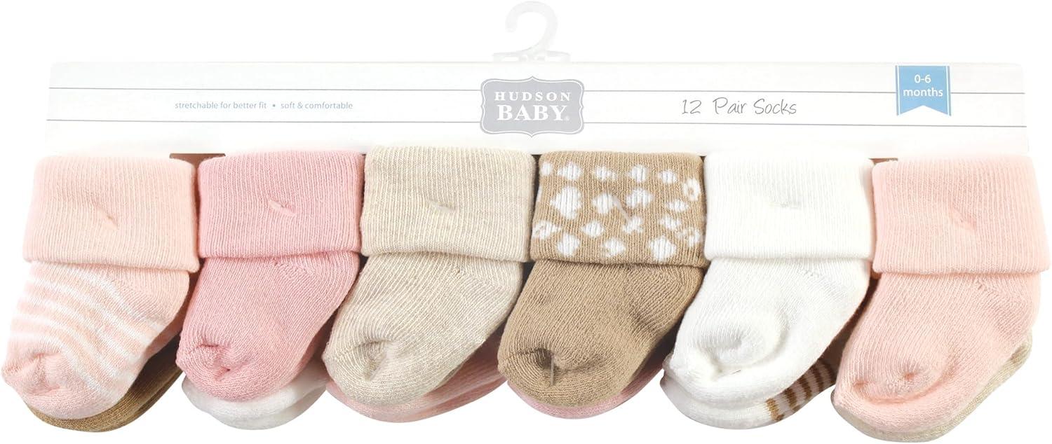 Hudson Baby Unisex Cotton Rich Baby Terry Socks 24-Pack(Pink Cheetah)