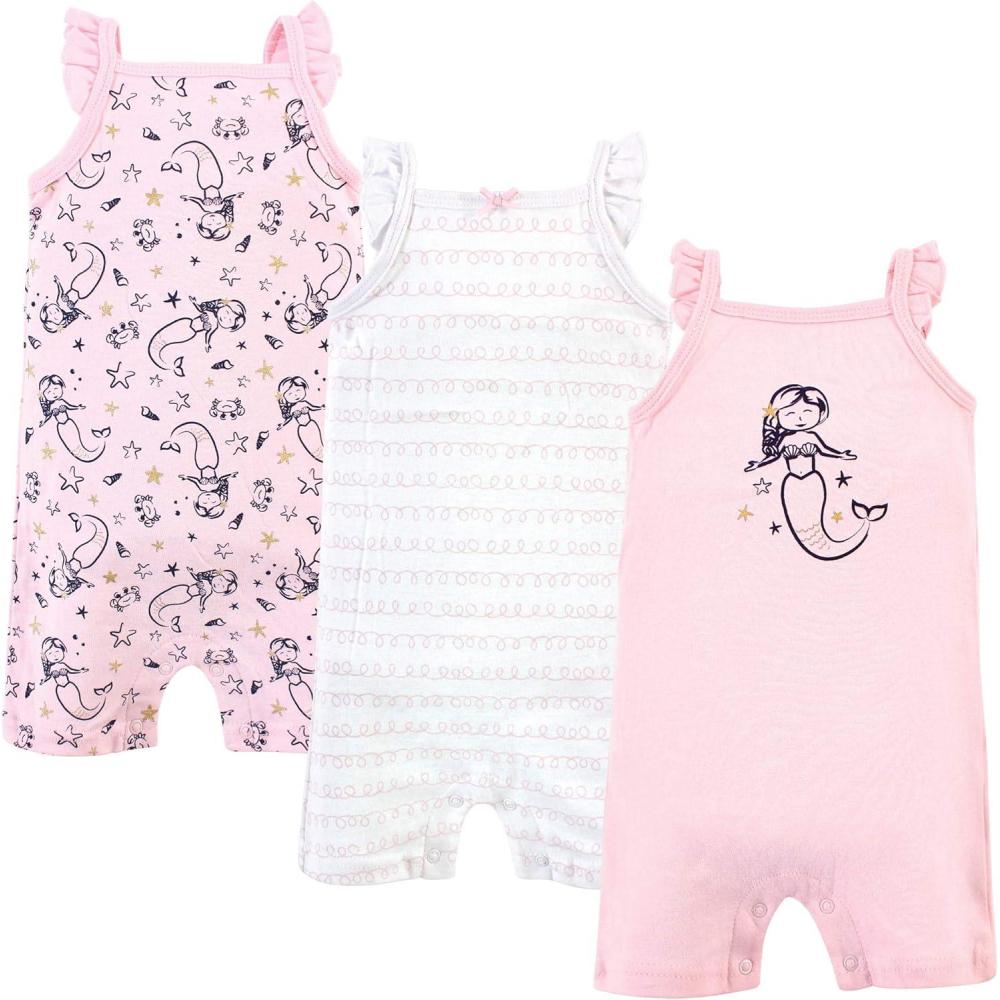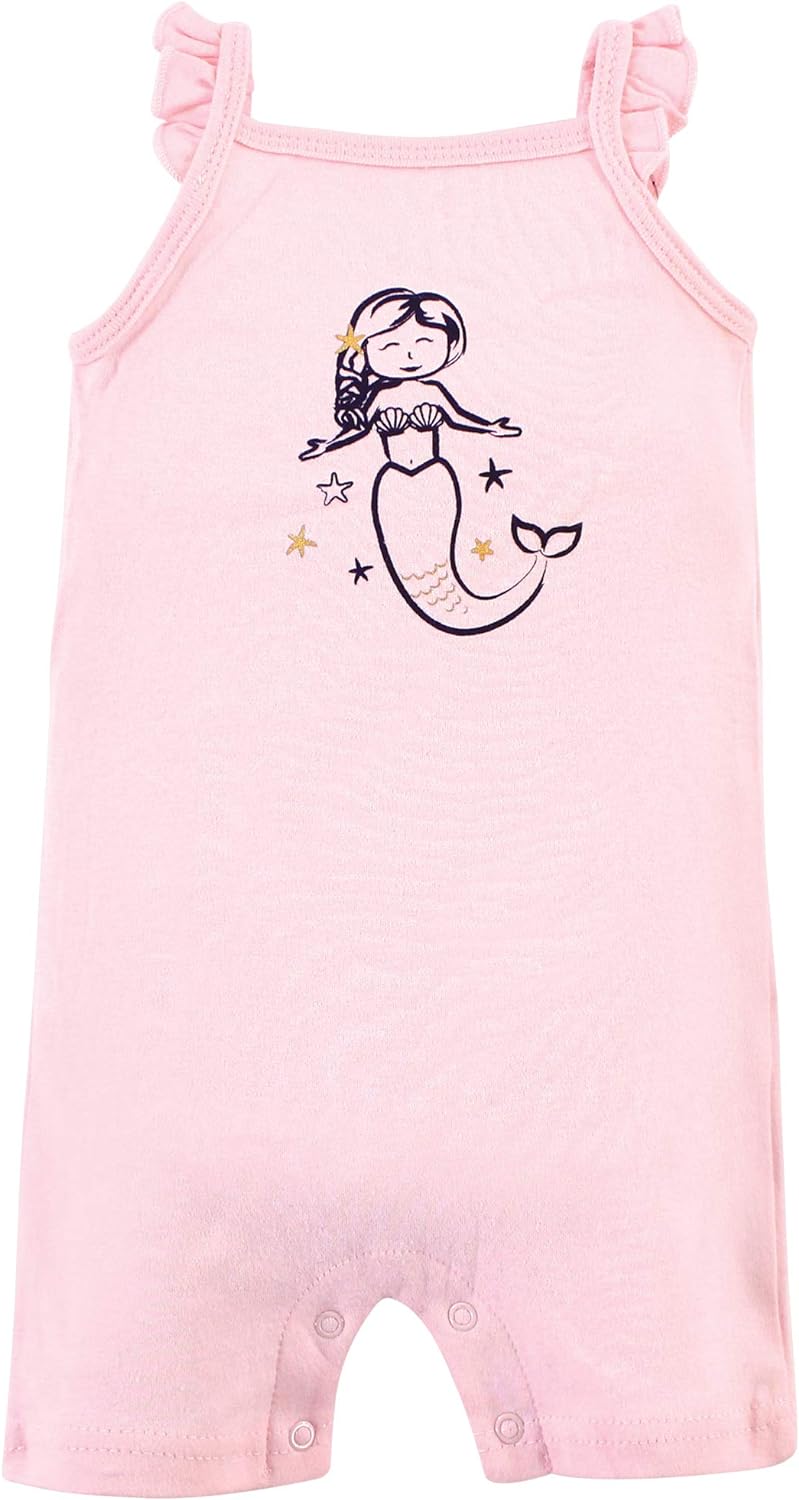 Hudson Baby Unisex Cotton Rompers(Pink Mermaid)