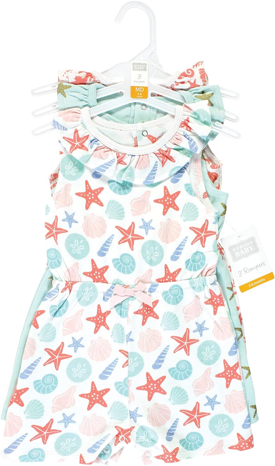 Hudson Baby Unisex Cotton Rompers(Sea Shells)