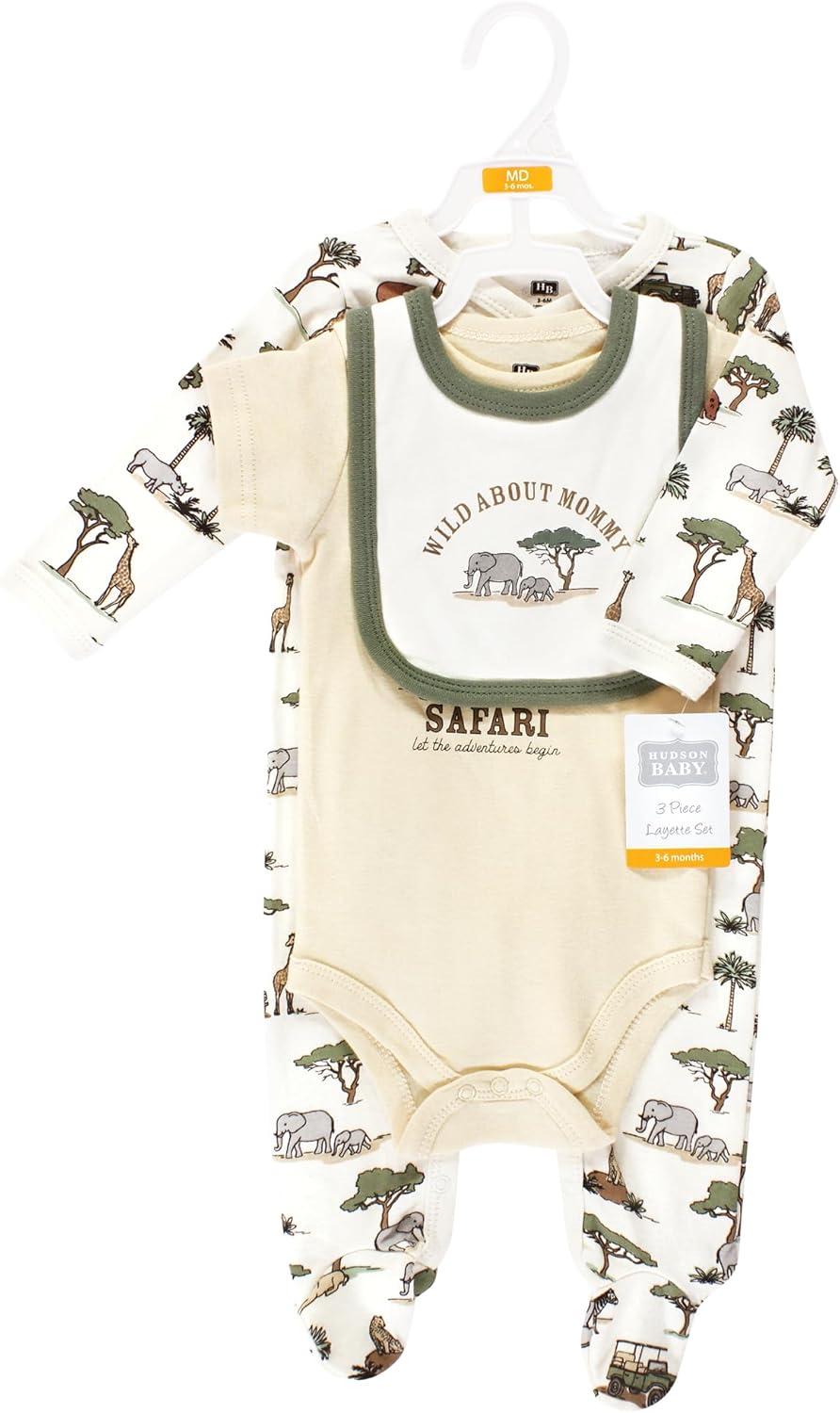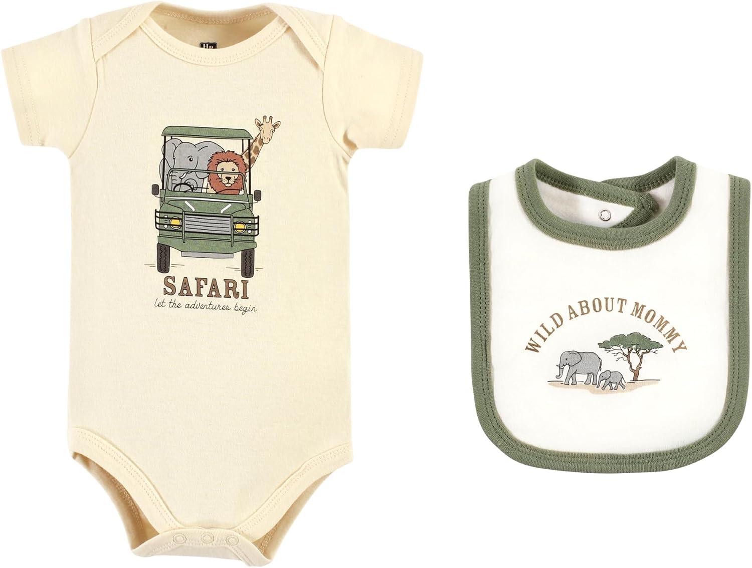 Hudson Baby Unisex Cotton Sleep and Play, Bodysuit and Bandana Bib Set(Going on Safari)