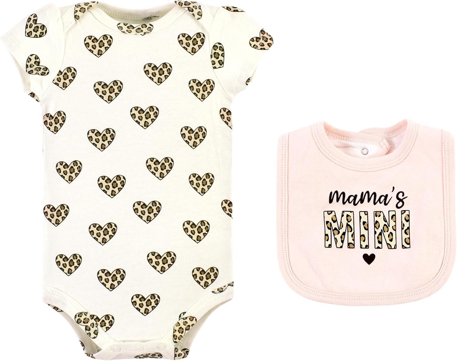 Hudson Baby Unisex Cotton Sleep and Play, Bodysuit and Bandana Bib Set(Leopard Hearts)