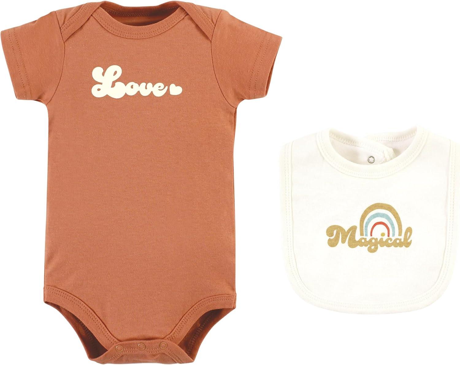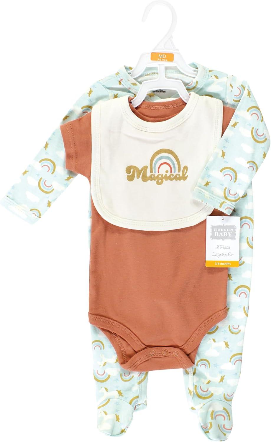 Hudson Baby Unisex Cotton Sleep and Play, Bodysuit and Bandana Bib Set(Magical Rainbow)