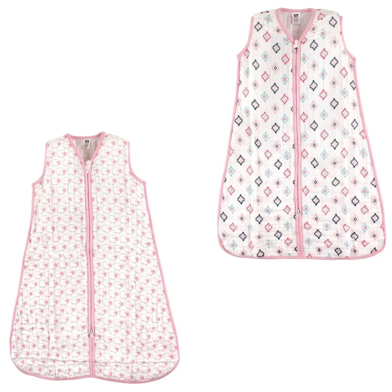 Hudson Baby Unisex Muslin Cotton Sleeveless Wearable Sleeping Bag, Sack, Blanket, Pink Sheep/Pink Aztec Muslin 2-Pack, 6-12 Months(Hudson Baby Unisex Muslin Cotton Sleeveless Wearable Sleeping Bag, Sack, Blanket, Pink Sheep/Pink Aztec Muslin 2-Pack, 6-12 Months)