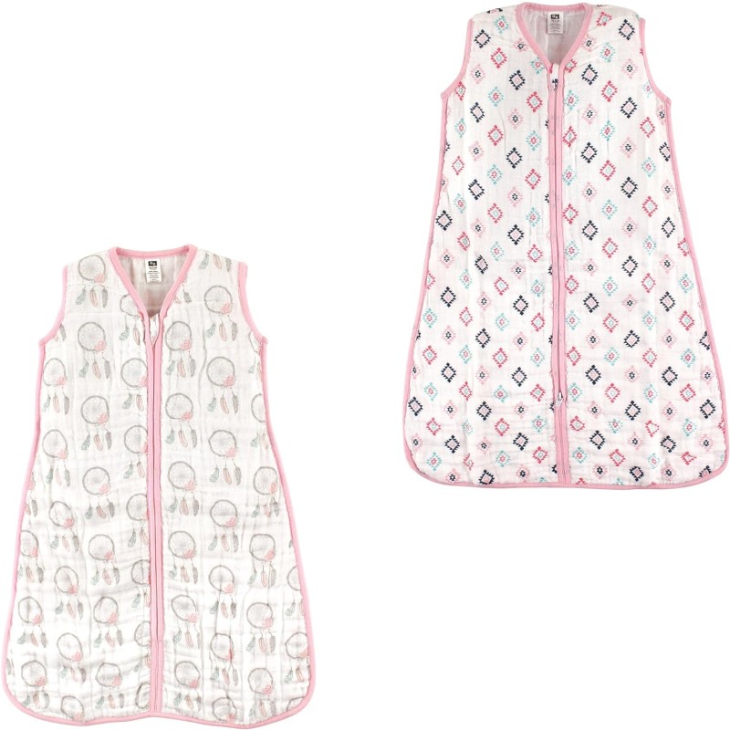 Hudson Baby Unisex Muslin Cotton Sleeveless Wearable Sleeping Bag, Sack, Blanket(Dream Catcher/Pink Aztec Muslin 2-pack)