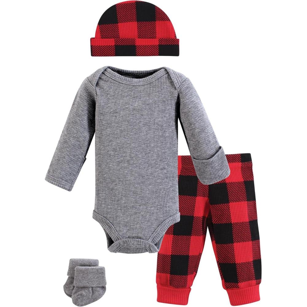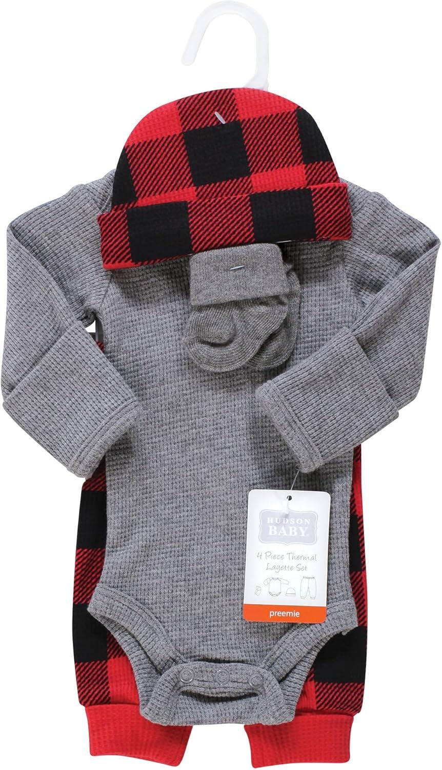 Hudson Baby Unisex Thermal Preemie Layette Set 4pc Long Sleeve Outfit(Buffalo Plaid)