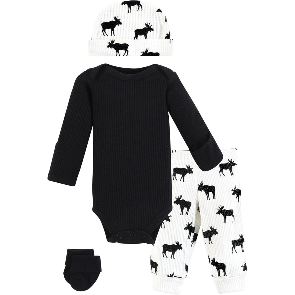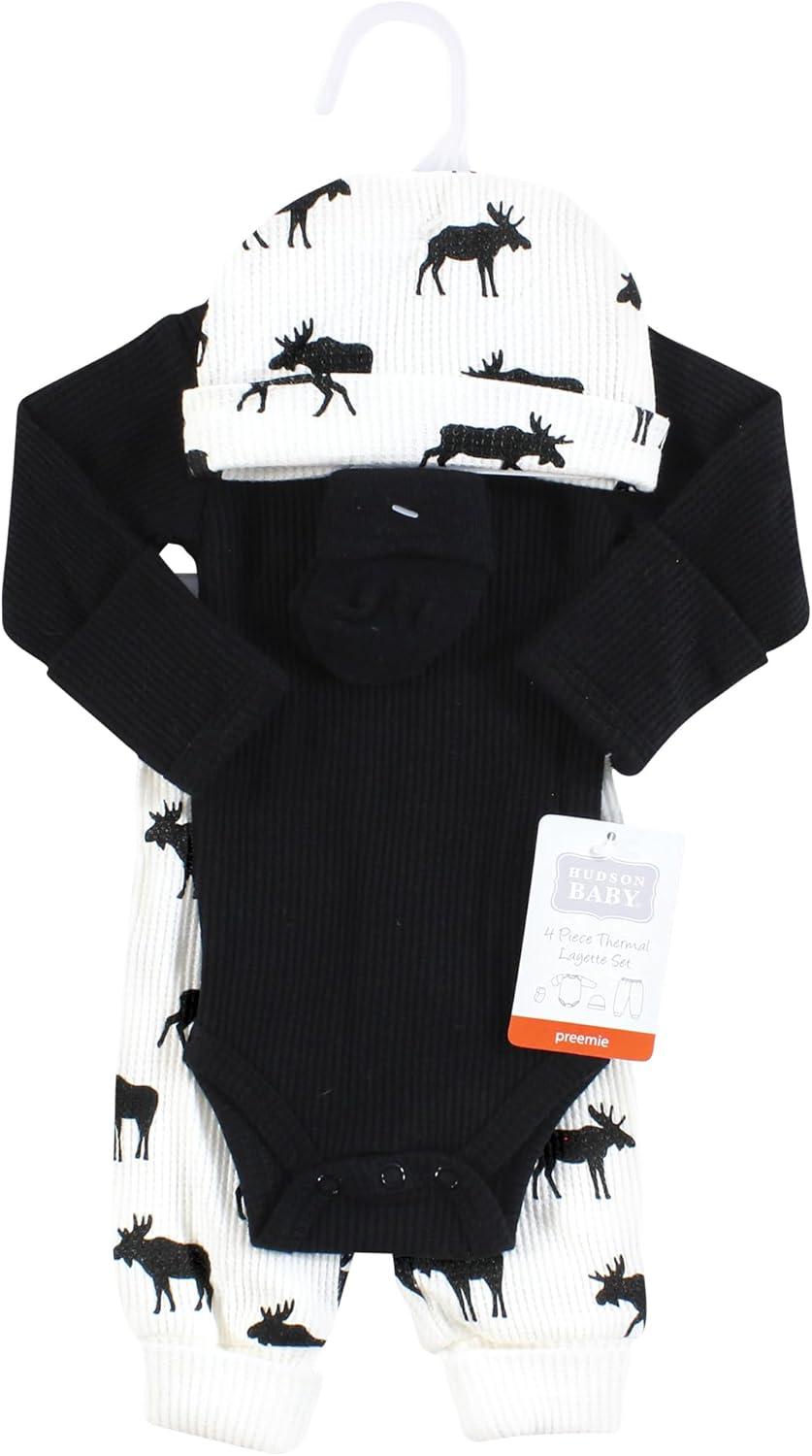 Hudson Baby Unisex Thermal Preemie Layette Set 4pc Long Sleeve Outfit(Moose)