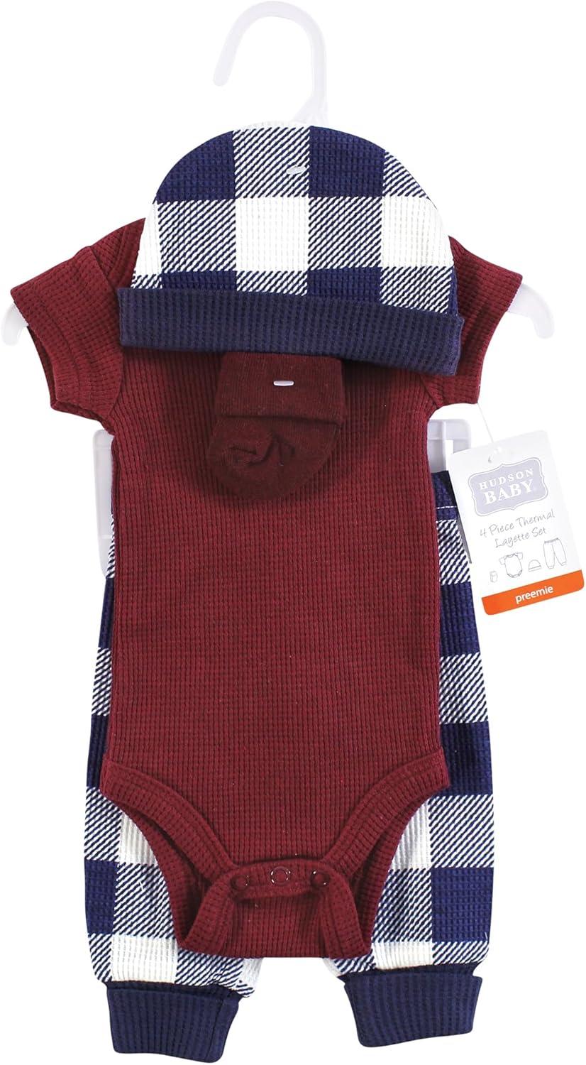 Hudson Baby Unisex Thermal Preemie Layette Set 4pc Short Sleeve Outfit(Navy Plaid)