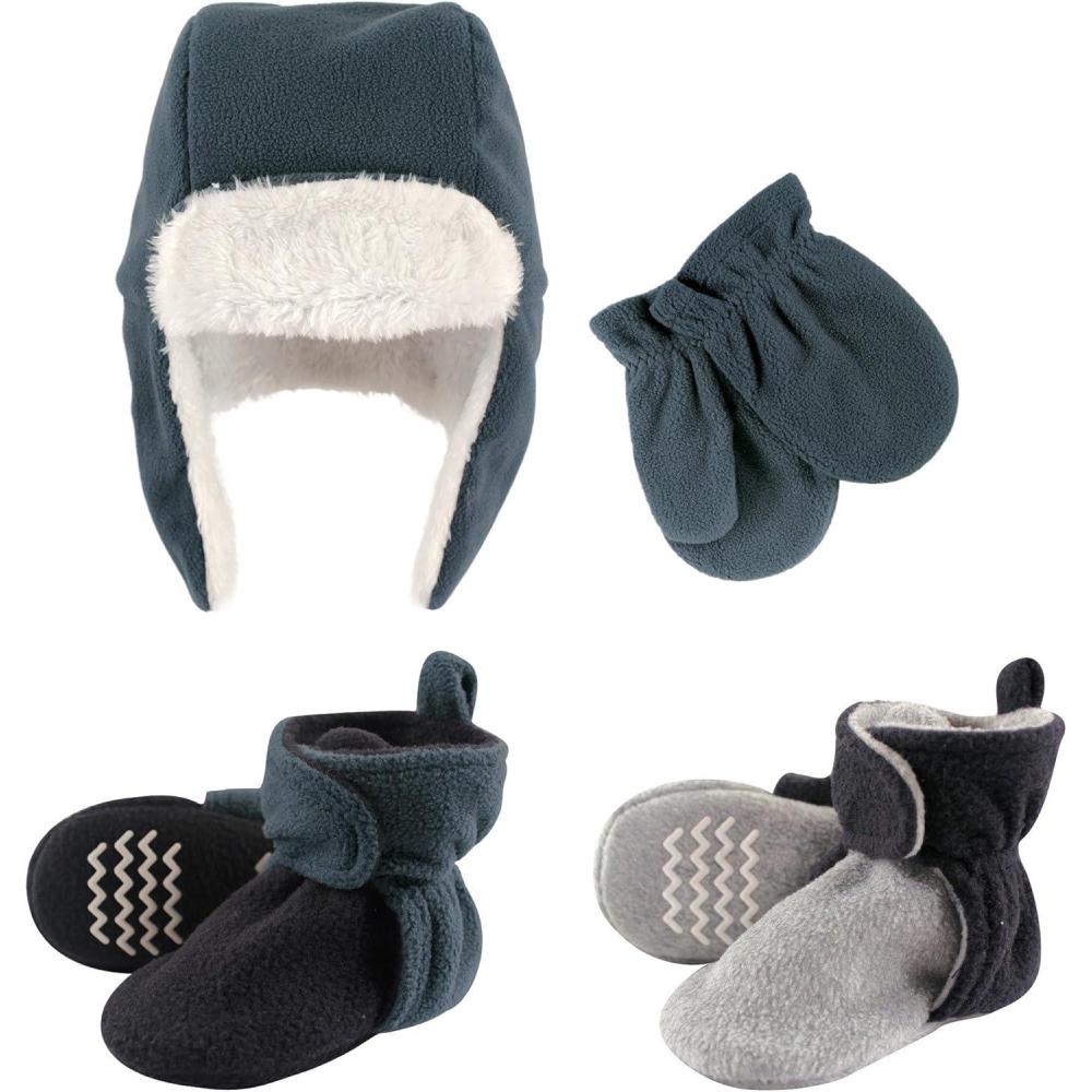 imageHudson Baby Winter Hat Mittens and 2 Pack Booties SetNavy Gray