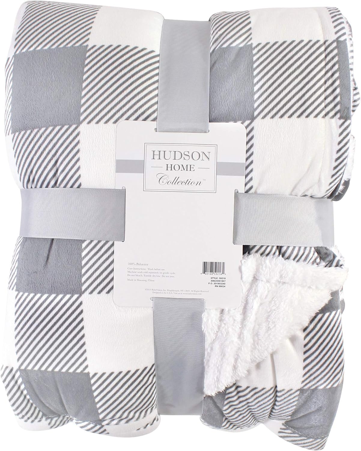 Hudson Home Collection Men and Women Mink Blanket with Sherpa Back, Tan Sherpa, 50X60 In. (Throw)(Gray Plaid Sherpa 60X80 Inch (Oversize Throw))