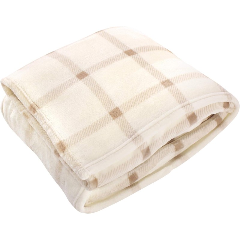 Hudson Home Collection Men and Women Mink Blanket with Sherpa Back, Tan Sherpa, 50X60 In. (Throw)(Tan Plaid Fleece 108X90 Inch (King))