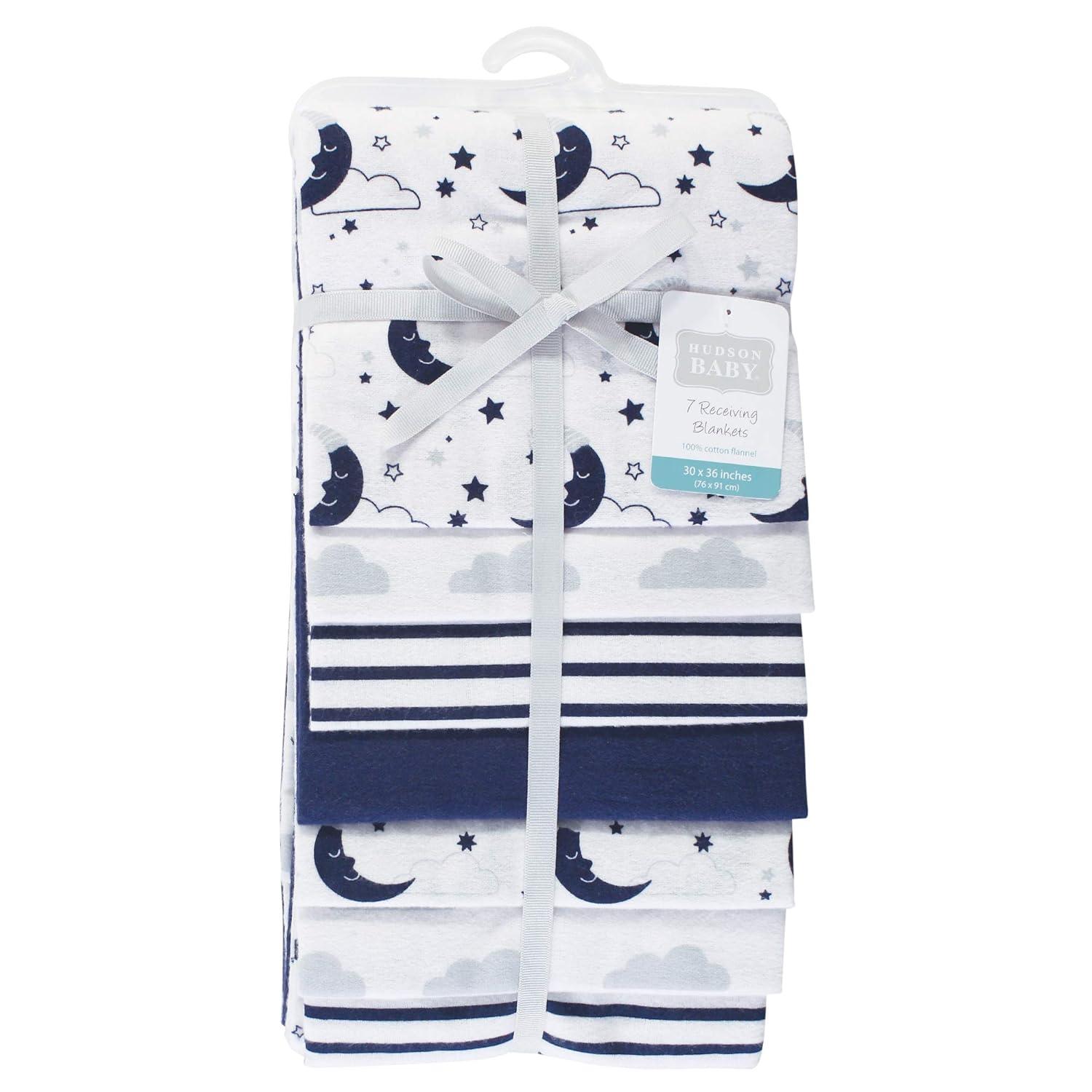 Little Treasure Hudson Baby Cotton Poly Flannel Receiving Blankets Multipack, Green Eucalyptus, 30×30 inches(Blue Moon)