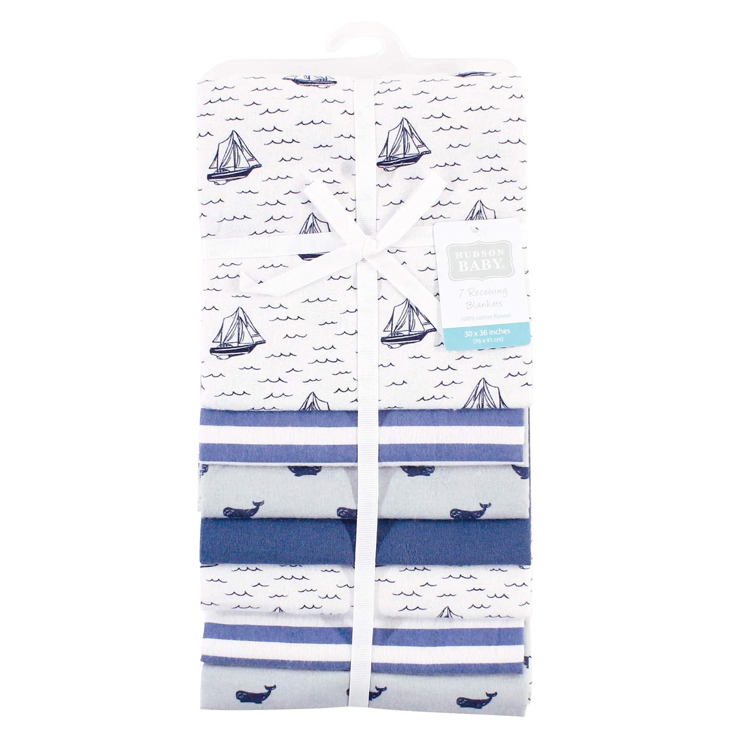 Little Treasure Hudson Baby Cotton Poly Flannel Receiving Blankets Multipack, Green Eucalyptus, 30×30 inches(Blue Sea Characters)