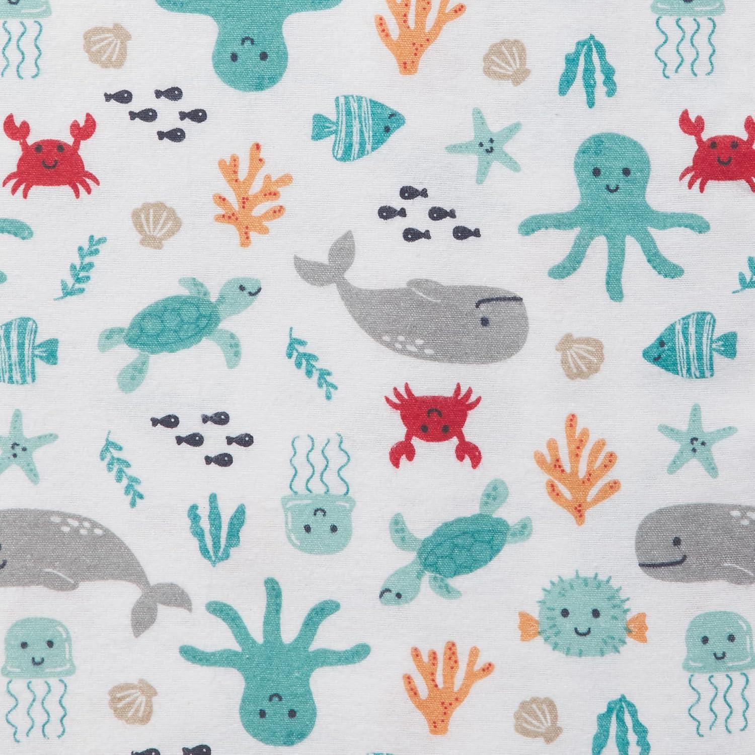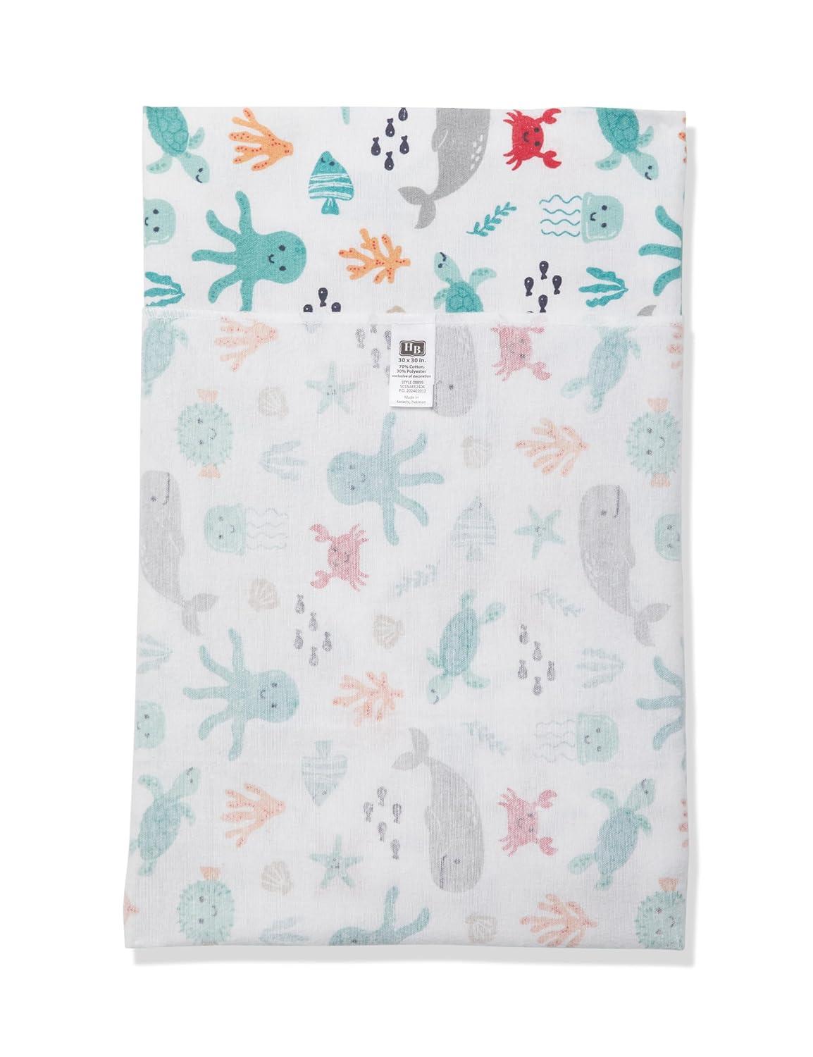 Little Treasure Hudson Baby Cotton Poly Flannel Receiving Blankets Multipack, Green Eucalyptus, 30×30 inches(Blue Sea Characters)