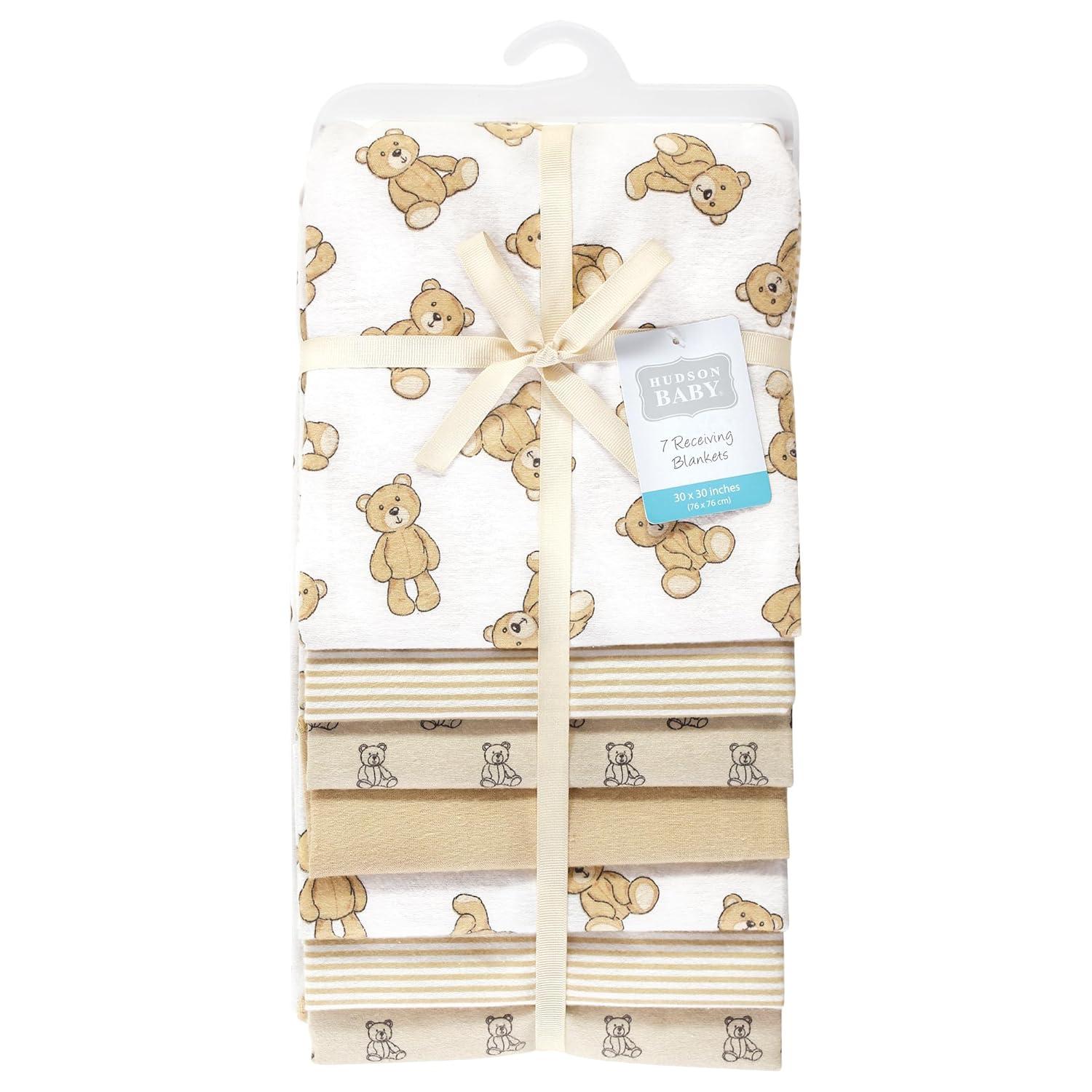Little Treasure Hudson Baby Cotton Poly Flannel Receiving Blankets Multipack, Green Eucalyptus, 30×30 inches(Brown Teddy Bears)