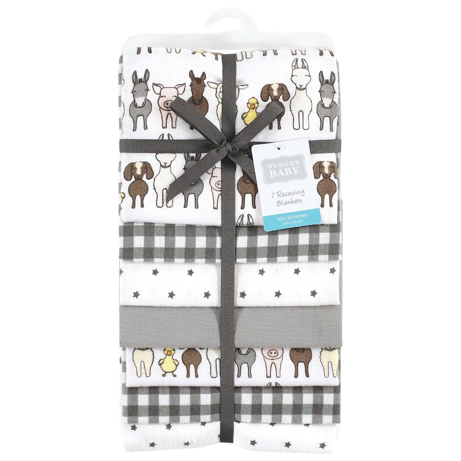 Little Treasure Hudson Baby Cotton Poly Flannel Receiving Blankets Multipack, Green Eucalyptus, 30×30 inches(Grey Farm Friends)