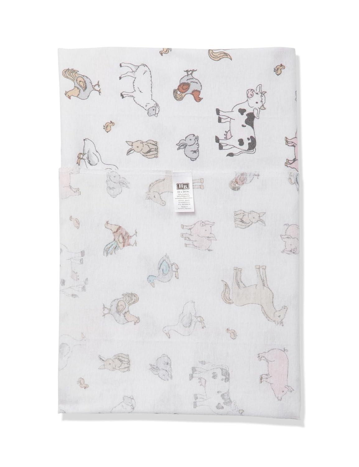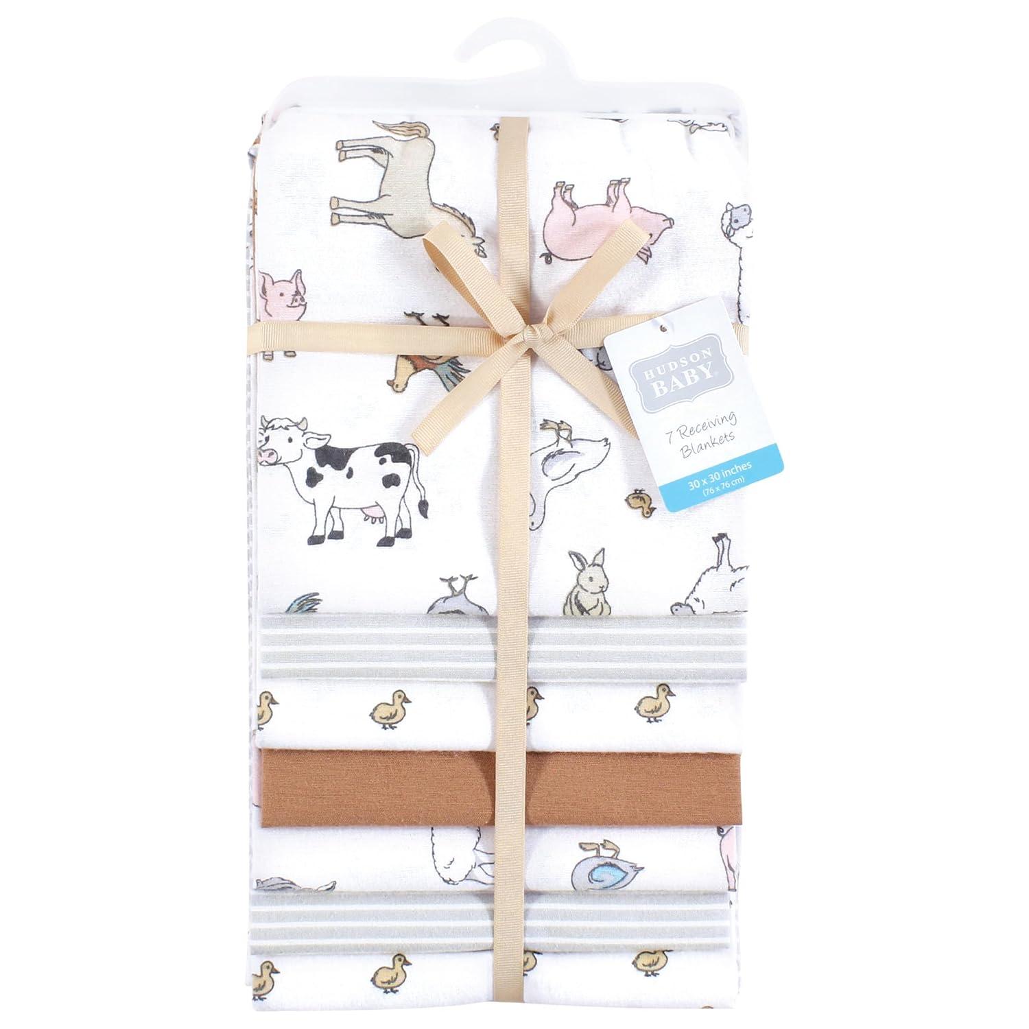 Little Treasure Hudson Baby Cotton Poly Flannel Receiving Blankets Multipack, Green Eucalyptus, 30×30 inches(Grey Farm Friends)