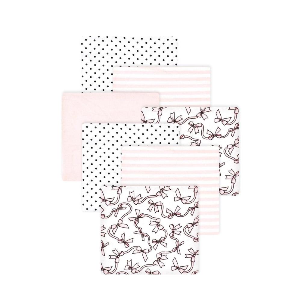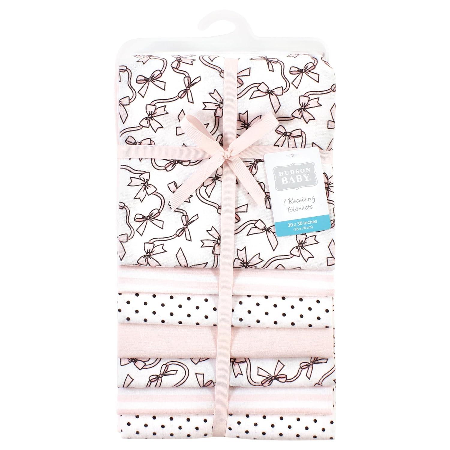 Little Treasure Hudson Baby Cotton Poly Flannel Receiving Blankets Multipack, Green Eucalyptus, 30×30 inches(Pink Bow)