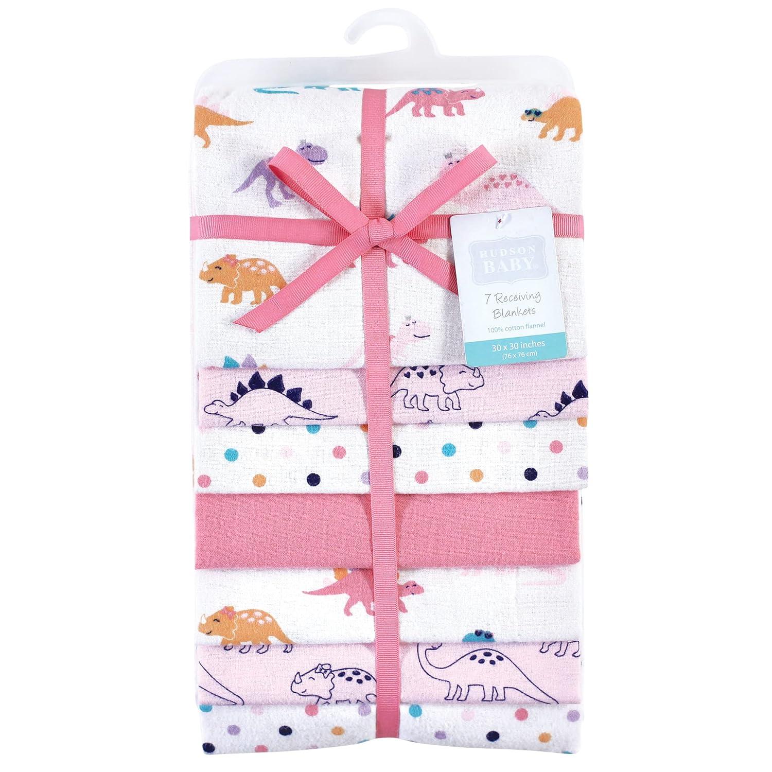 Little Treasure Hudson Baby Cotton Poly Flannel Receiving Blankets Multipack, Green Eucalyptus, 30×30 inches(Pink Cuteasaurus)
