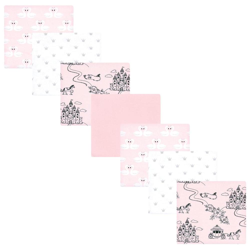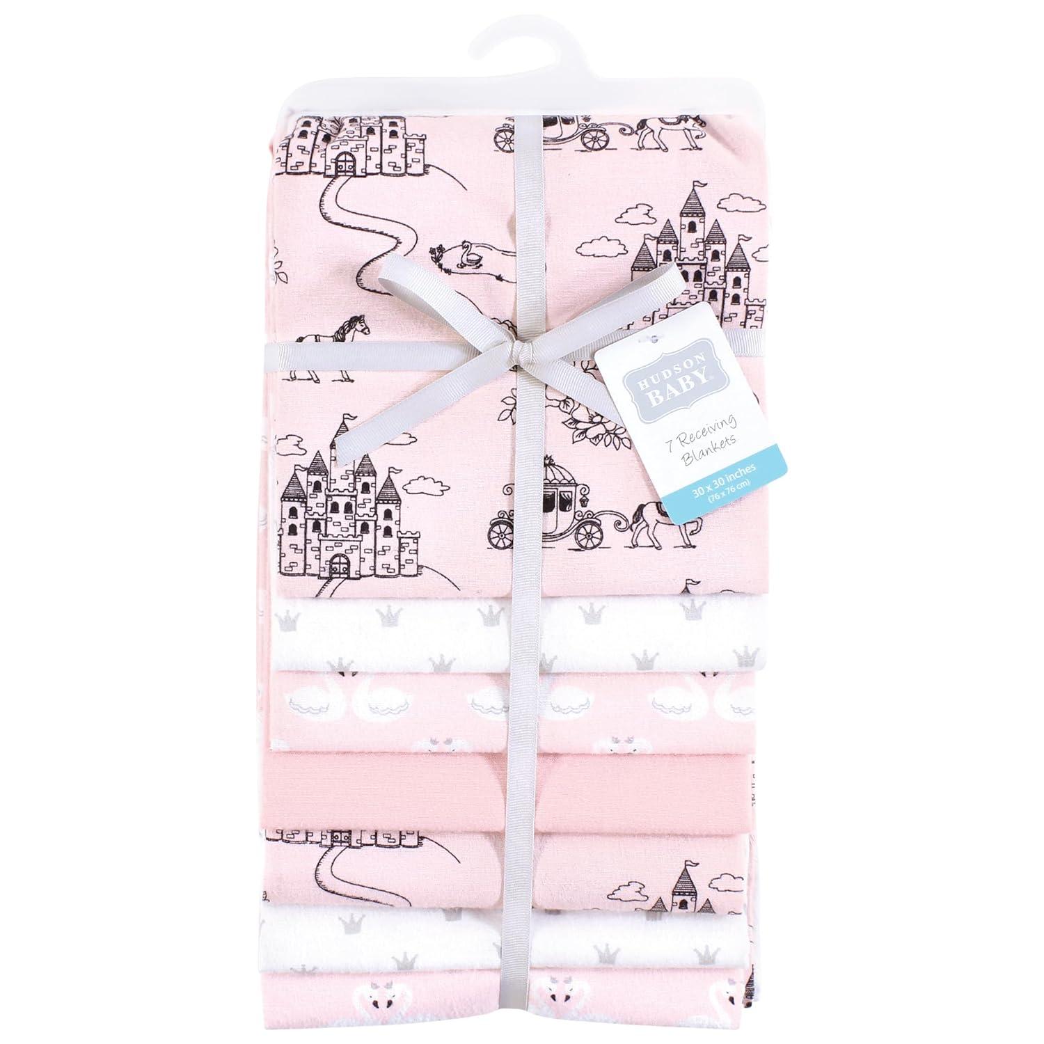 Little Treasure Hudson Baby Cotton Poly Flannel Receiving Blankets Multipack, Green Eucalyptus, 30×30 inches(Pink Fairytale Princess)