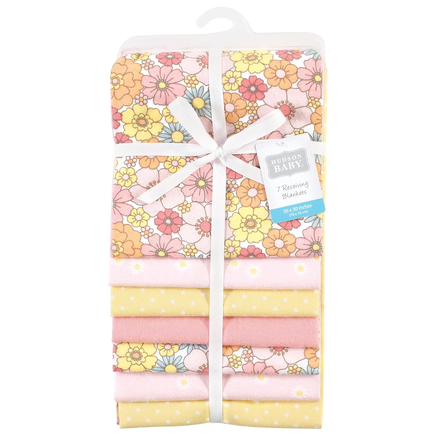 Little Treasure Hudson Baby Cotton Poly Flannel Receiving Blankets Multipack, Green Eucalyptus, 30×30 inches(Pink Peace Love Flowers)