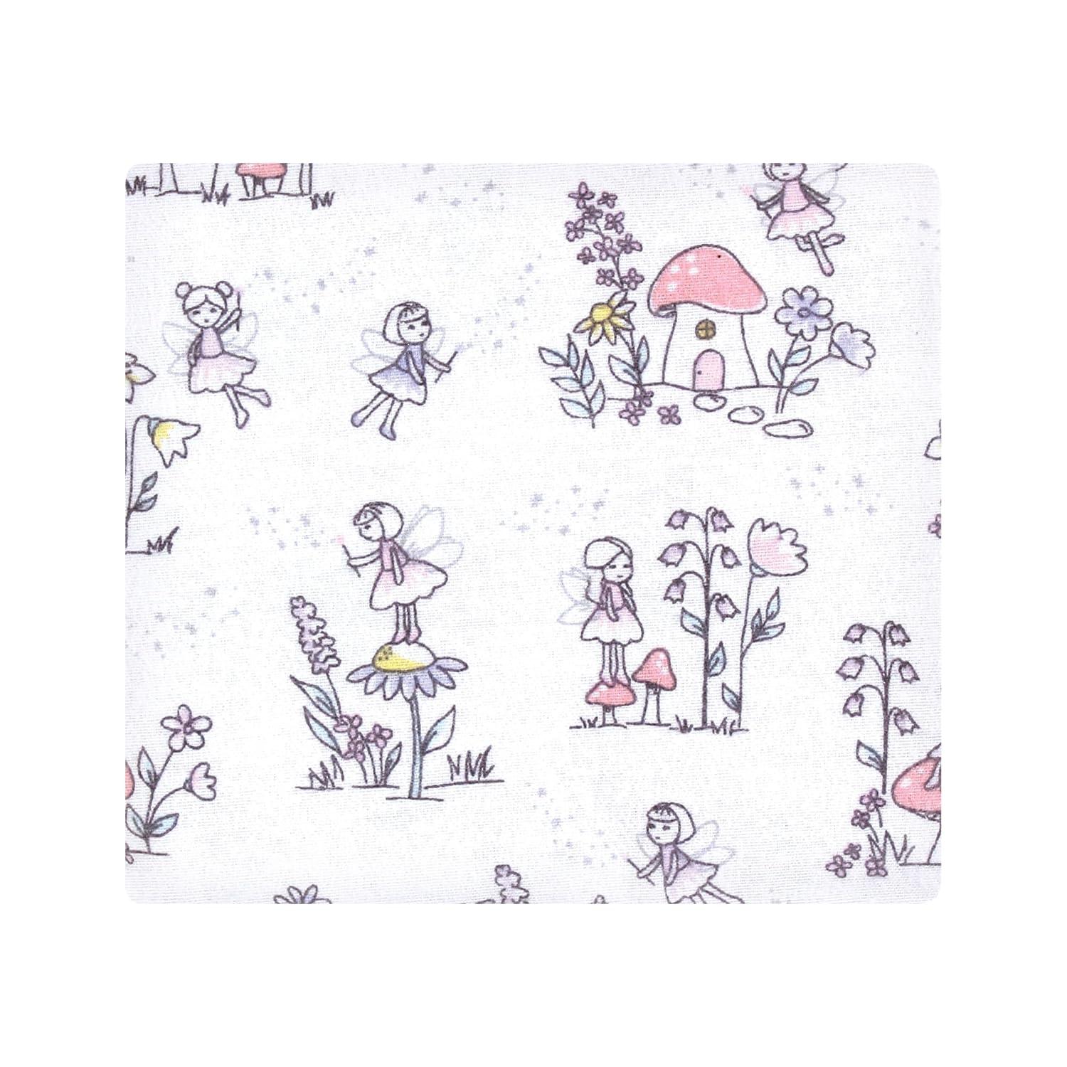 Little Treasure Hudson Baby Cotton Poly Flannel Receiving Blankets Multipack, Green Eucalyptus, 30×30 inches(Purple Garden Fairies)