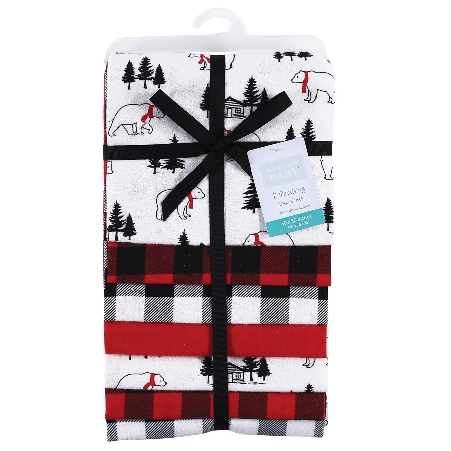 Little Treasure Hudson Baby Cotton Poly Flannel Receiving Blankets Multipack, Green Eucalyptus, 30×30 inches(Red Buffalo Plaid Bear)