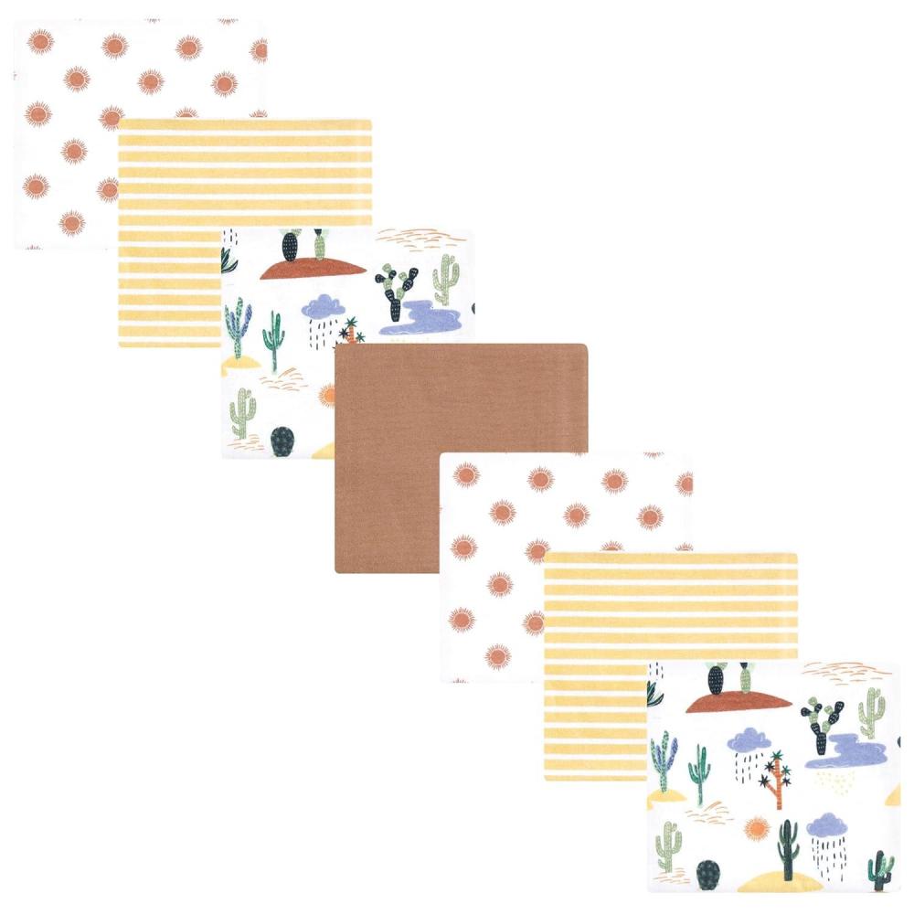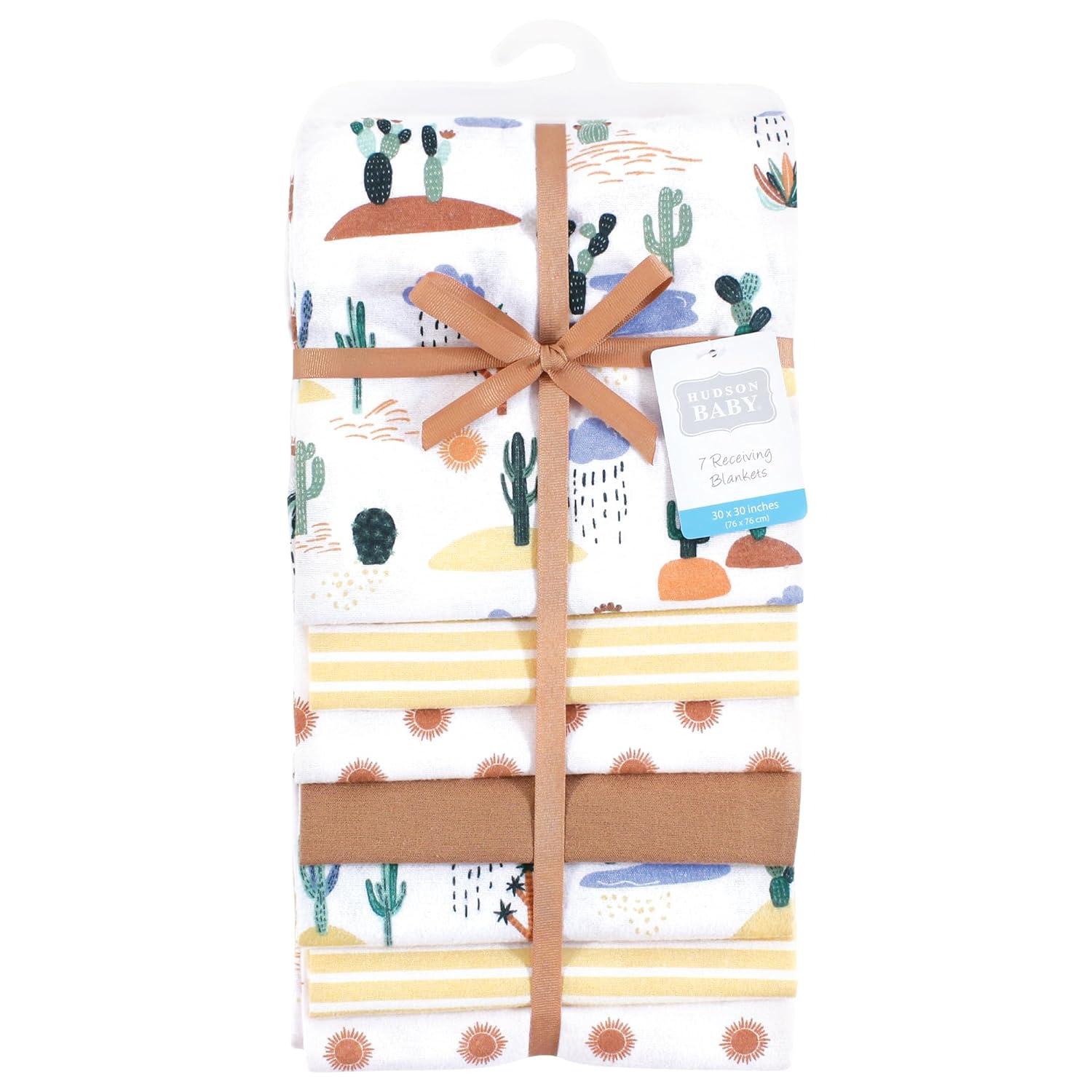 Little Treasure Hudson Baby Cotton Poly Flannel Receiving Blankets Multipack, Green Eucalyptus, 30×30 inches(Yellow Fun Desert)