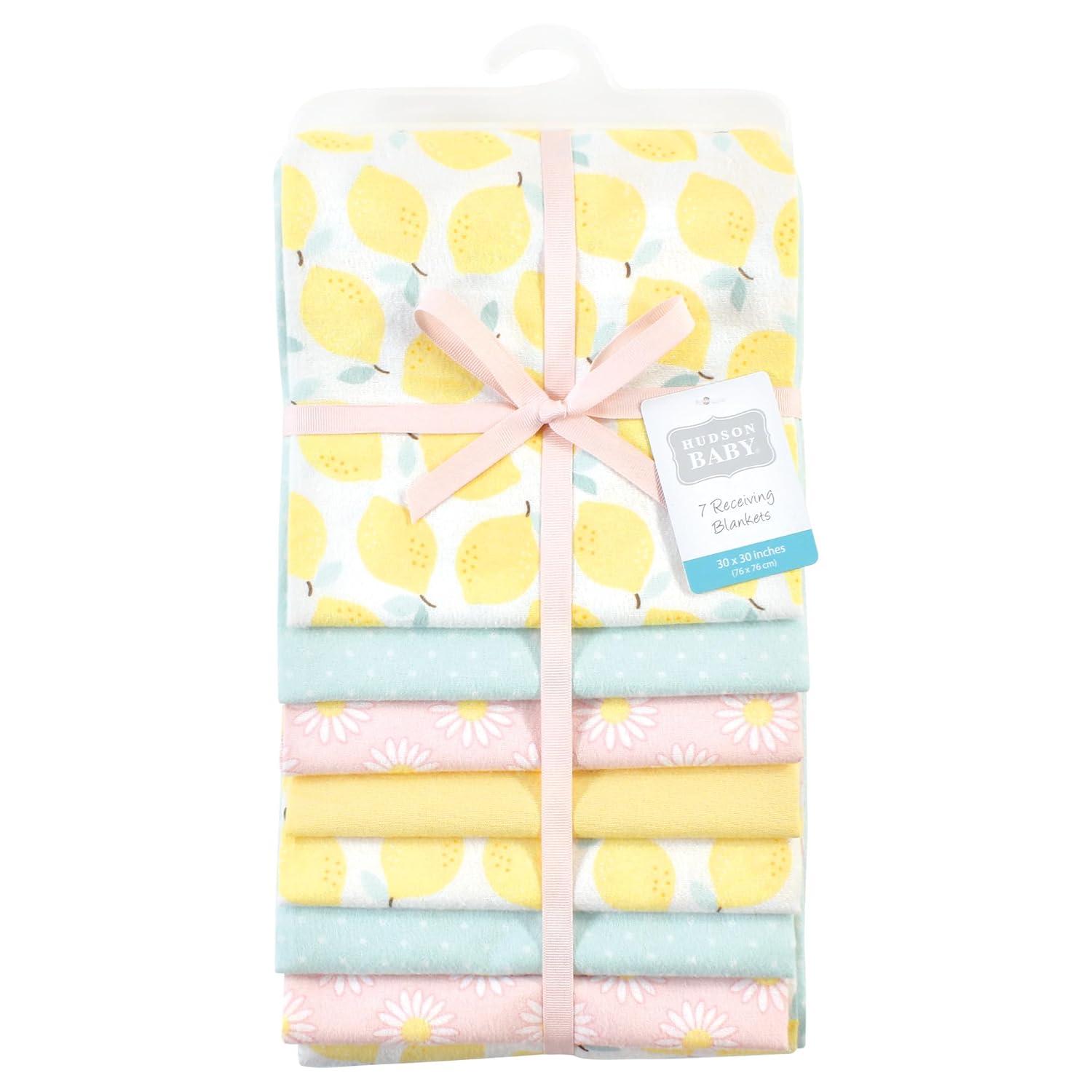Little Treasure Hudson Baby Cotton Poly Flannel Receiving Blankets Multipack, Green Eucalyptus, 30×30 inches(Yellow Lemon Daisy)